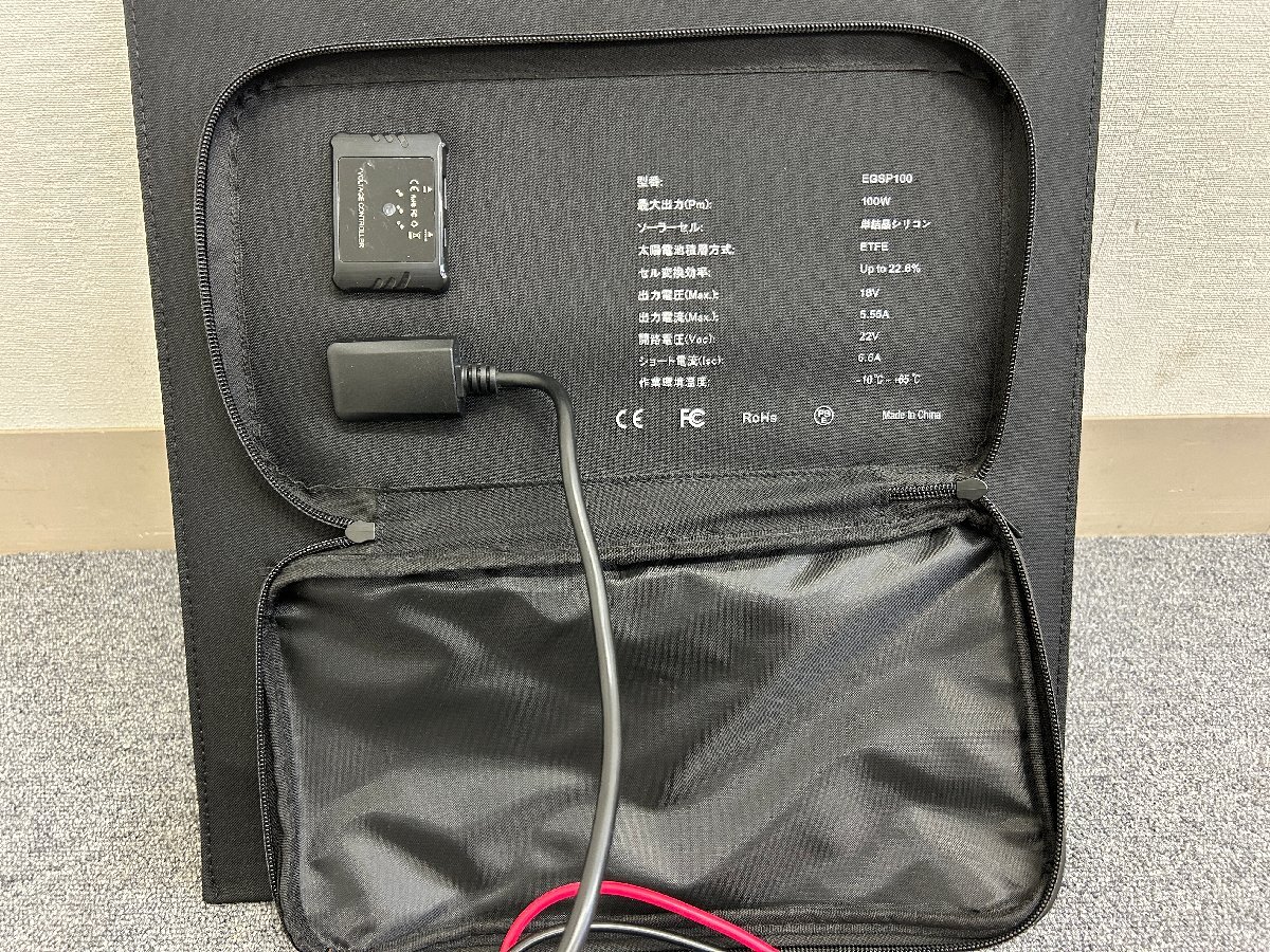 その他情報:最大出力100W、ETFE素材、変換率26.6%、IP54防水、防塵