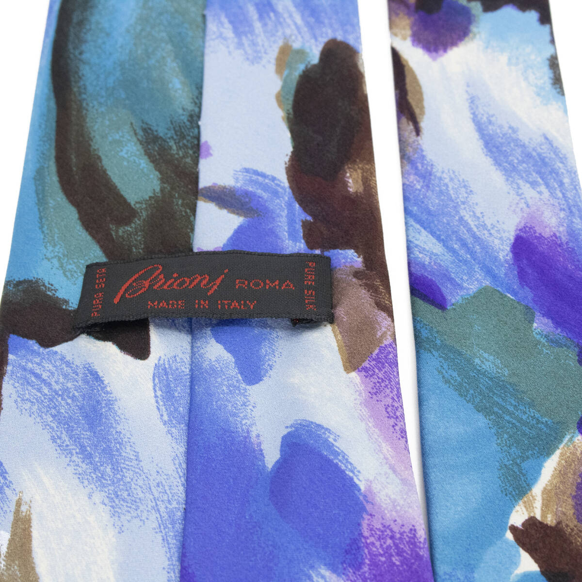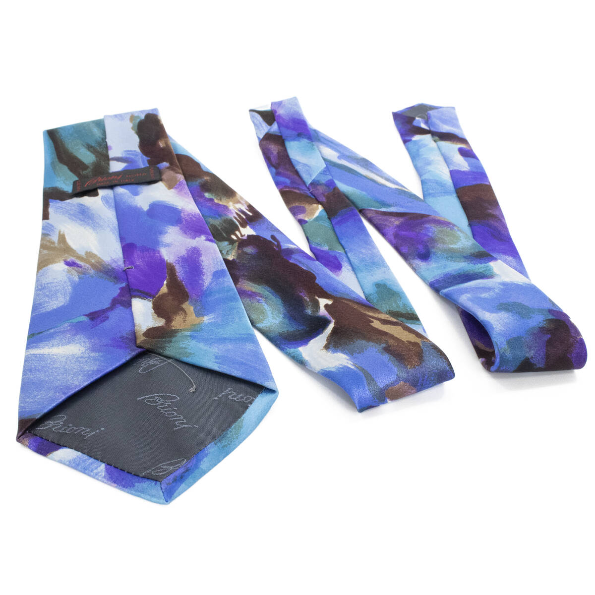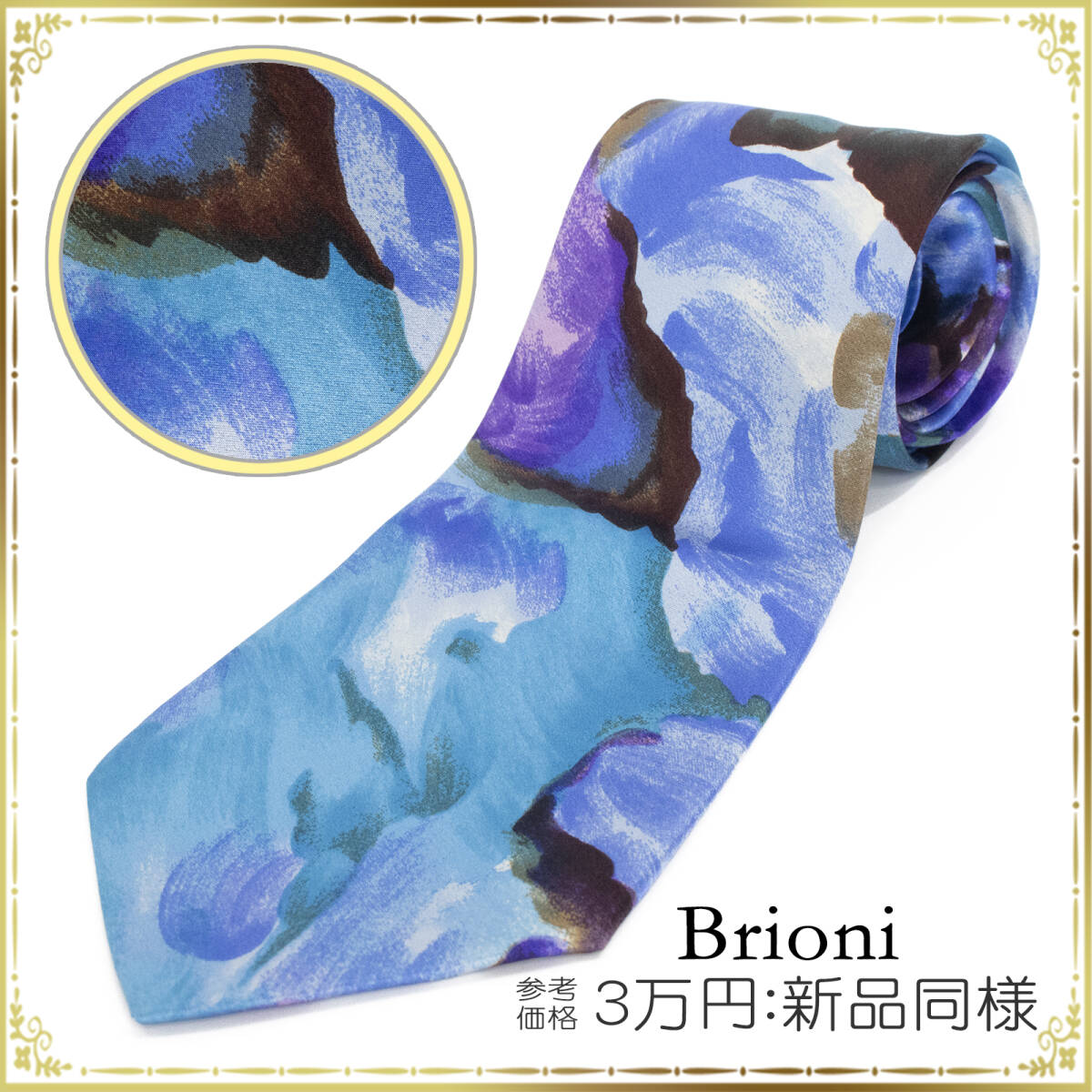 【全額返金保証・送料無料・新品同様】ブリオーニのネクタイ 正規品 総柄 迷彩柄 グラデーション ブルー系 希少 メンズ ビジネス 通勤