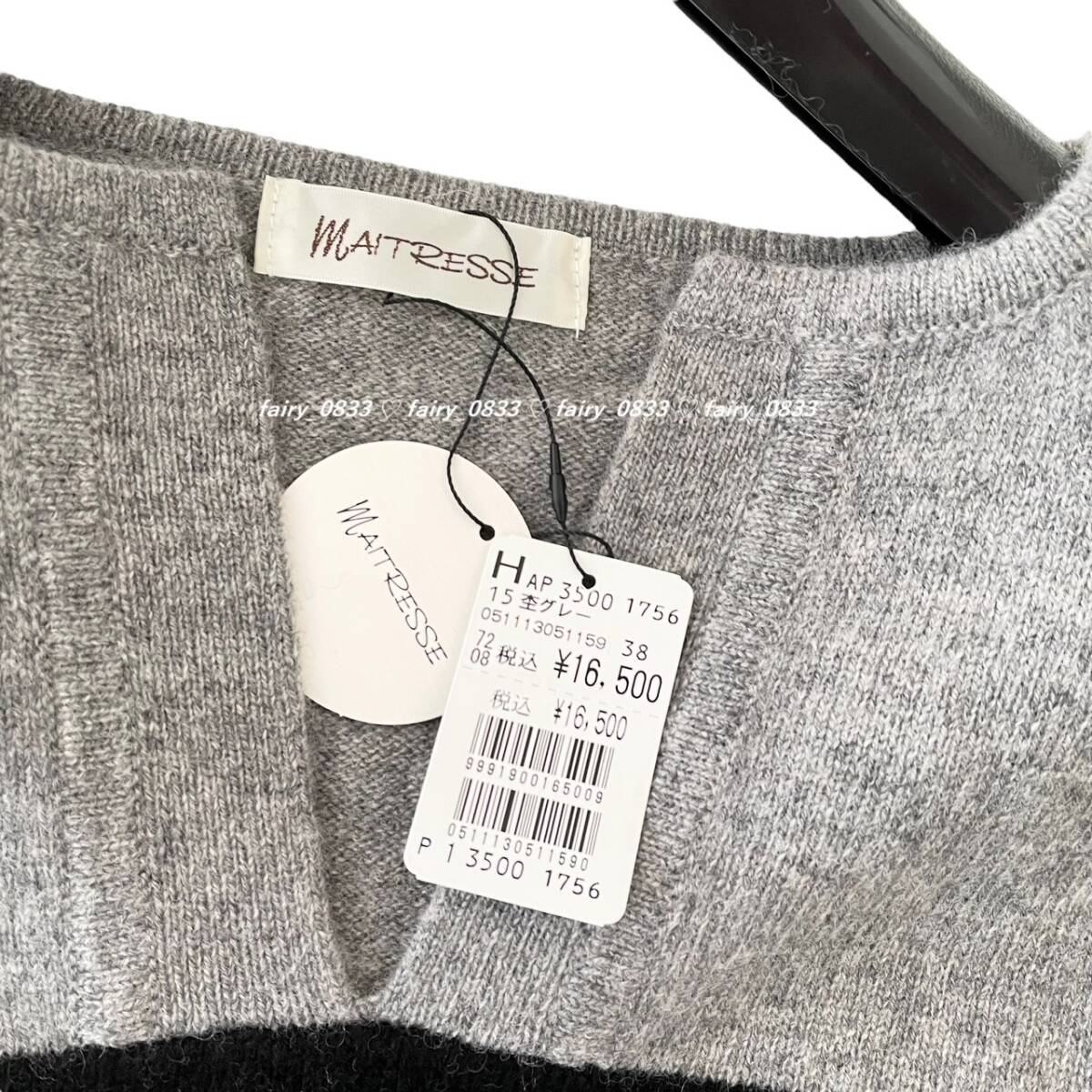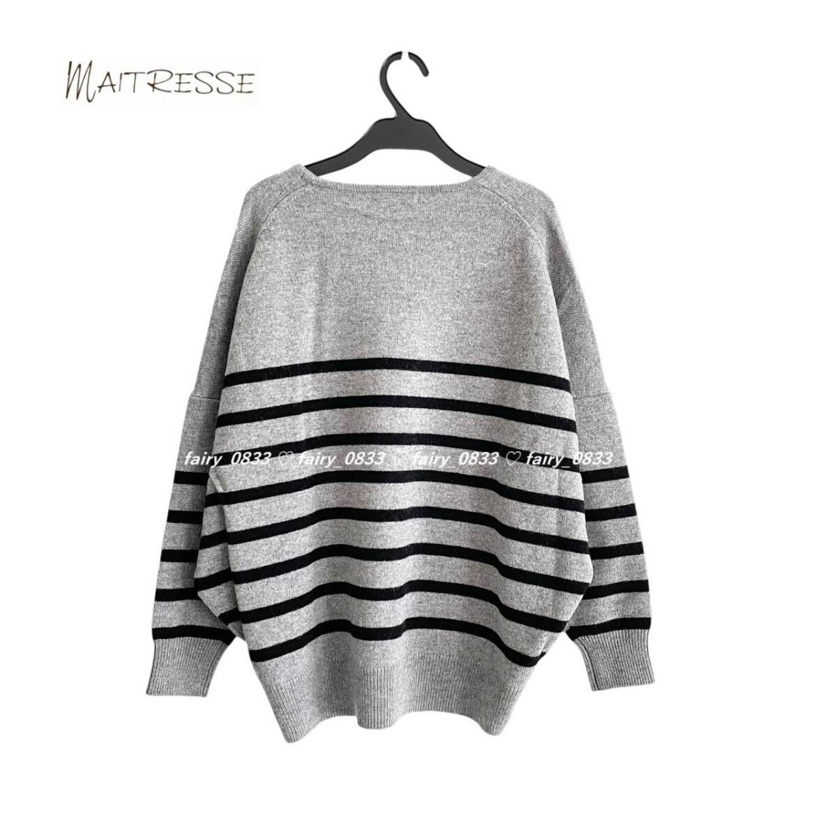 新品タグ付き、SCOT CLUBスコットクラブ取扱いブランド・MAITRESSE (メトリーゼ)からキーネックボーダー切替ニットの紹介です。◆お色は杢グレー系×ブラック◆ゆとりあるサイズ感でボディをふんわり包み込むようなリラクシーシルエットニット♪フロントのキーネックがポイント!カットソーやシャツとのレイヤードコーデもおススメです。定価16.500円のお品です。※モデル画像は同色です。