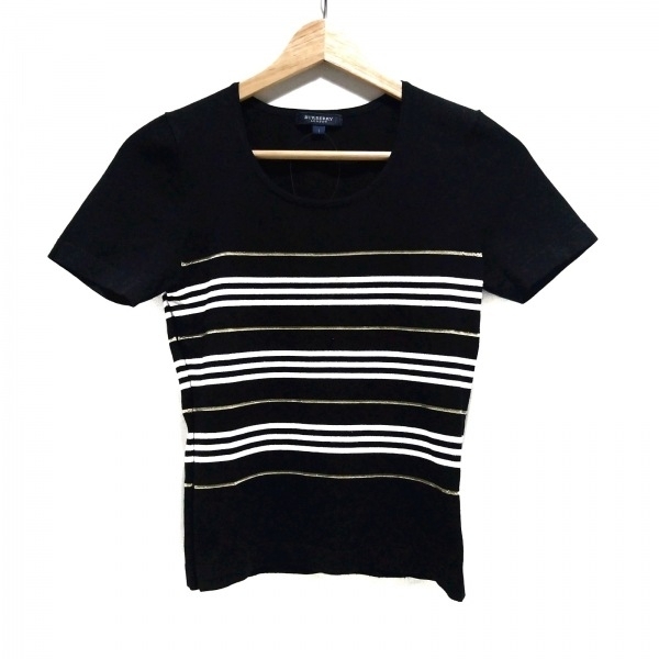 バーバリーロンドン Burberry LONDON 半袖カットソー サイズ1 S - 黒×白×ベージュ レディース クルーネック/ボーダー/ラメ トップス