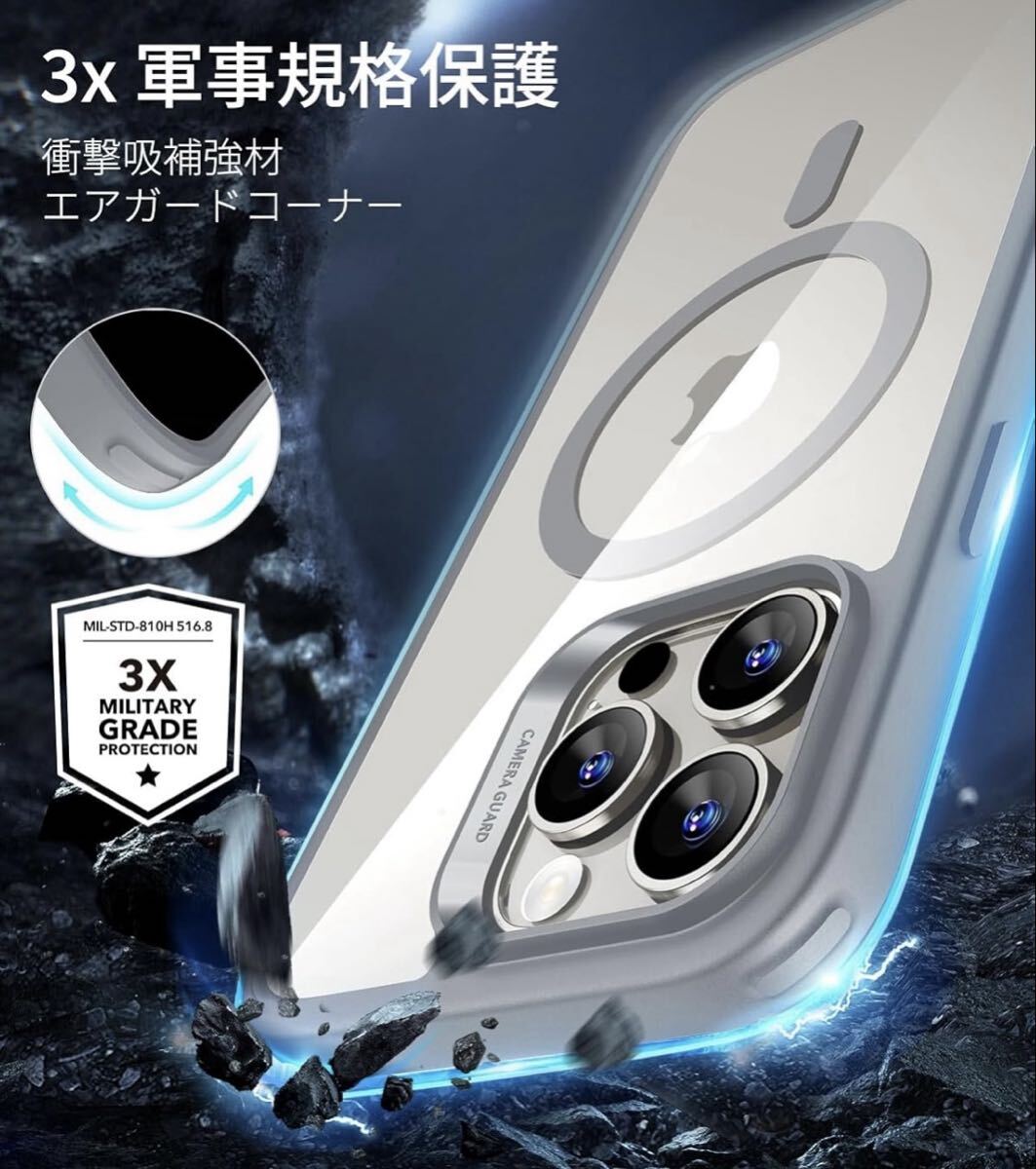 【米軍MIL規格の保護】厳密なテストにより、iPhoneが全面的に保護されることを実証しました。衝撃吸収エアガードコーナーにより、スマホを衝撃からしっかり保護します。