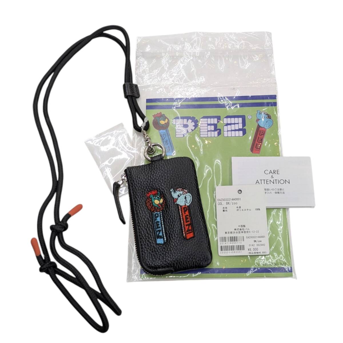① 未使用品 PEZ ペッツ ear ear PAPILLONNER イア パピヨネ 牛革モバイルストラップショルダー コインケース ブラック EAZ5032214A0001