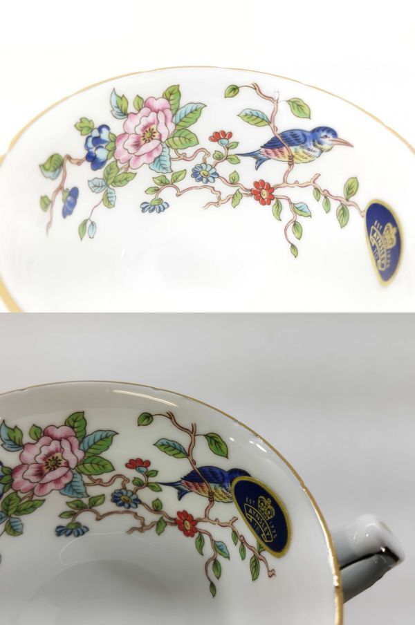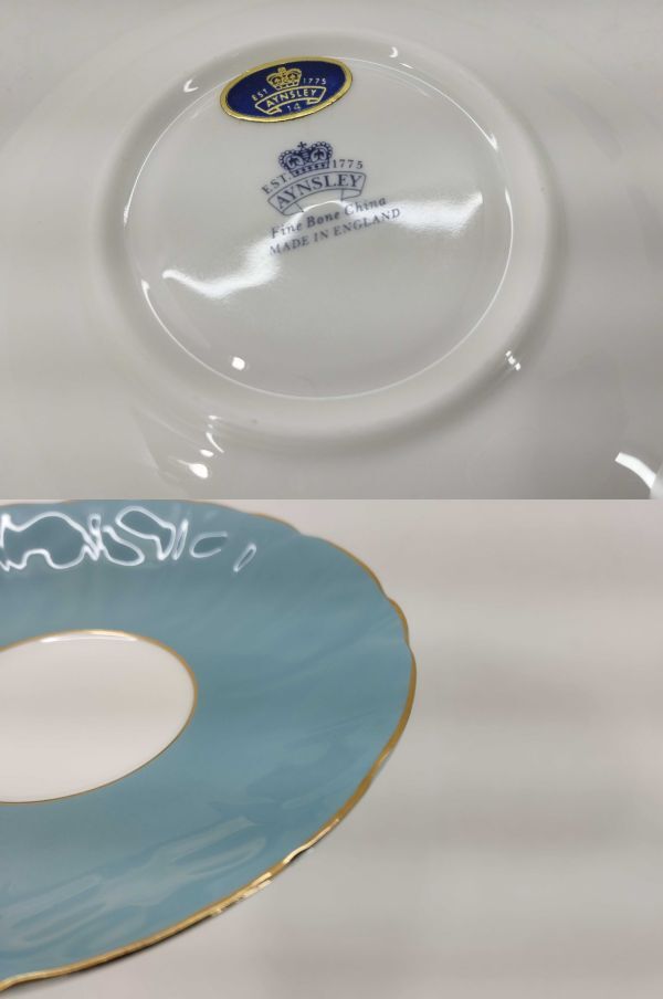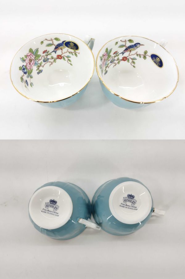 サ/ エインズレイ AYNSLEY カップ&ソーサー カップ2客 ソーサー1枚 花鳥 ターコイズブルー /HY-1151