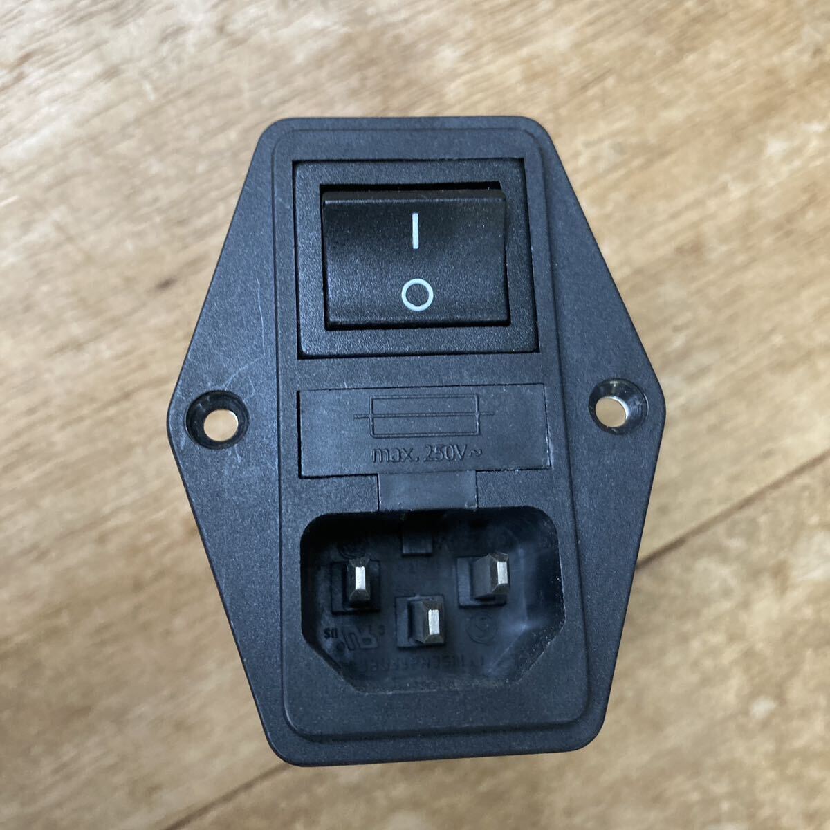 ノイズフィルタとヒューズ(片切り)、スイッチ付きです。ヒューズは10Aまで使用できます。