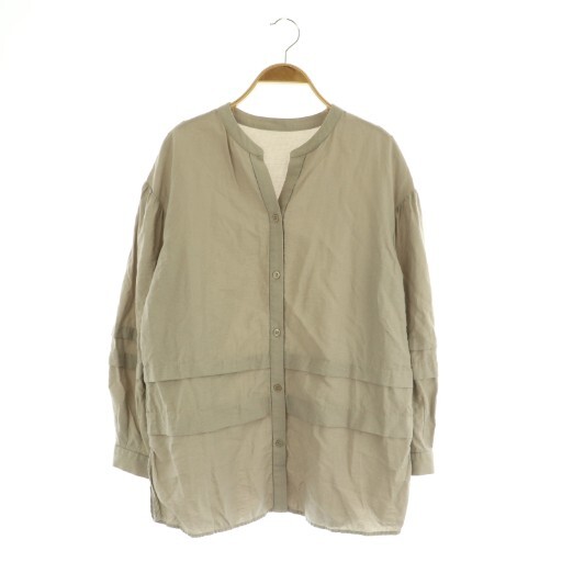 インディヴィ INDIVI タックデザインパフスリーブ ブラウス 長袖 38 グレージュ /MY ■OS レディース