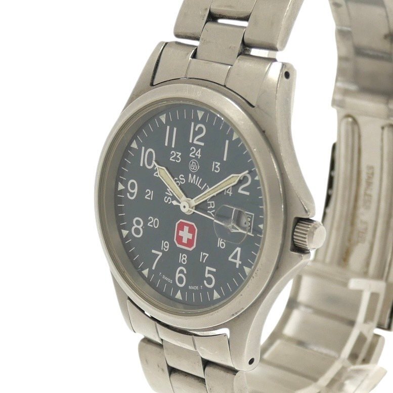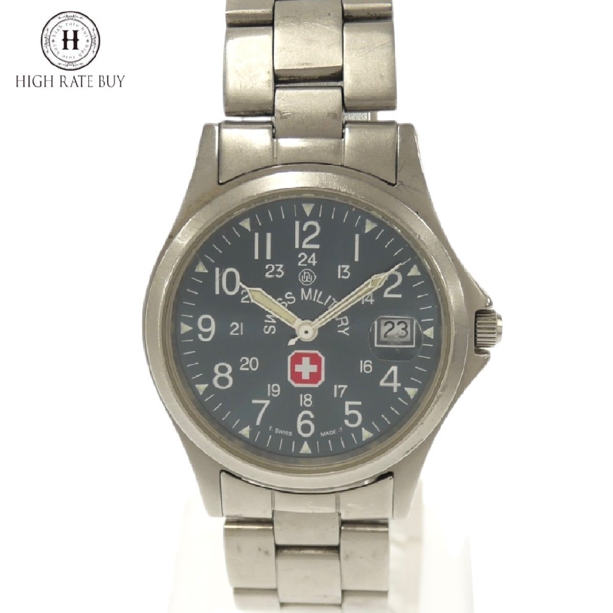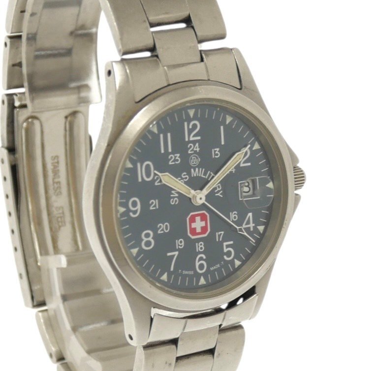 1円スタート 稼働品 SWITH MILITARY スイスミリタリー メンズ 腕時計 6-413 6-513 デイト クォーツ QZ ラウンド 3針 SS ブルー文字盤