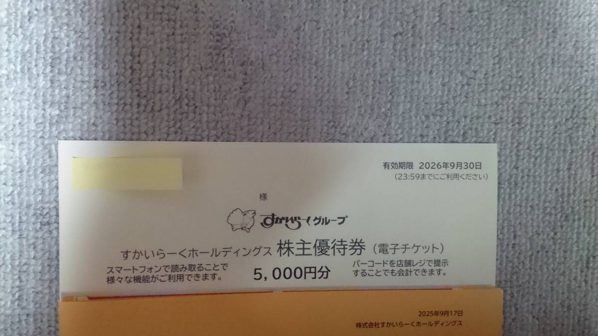 ☆すかいらーくグループ 株主優待券 5,000円分 電子チケット!