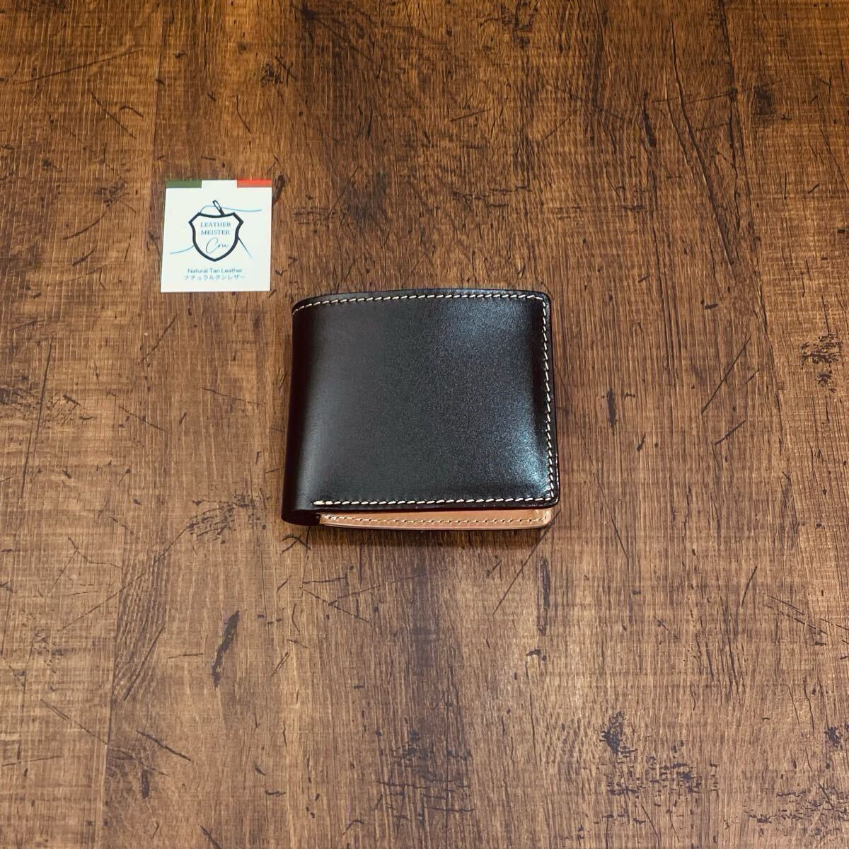 骨太な重厚感を放つブラックドルレザーを使い易いコンパクトサイズに落とし込んだウォレットです