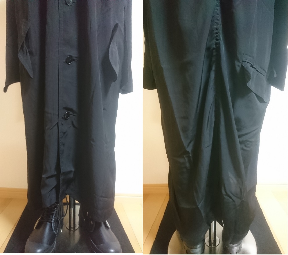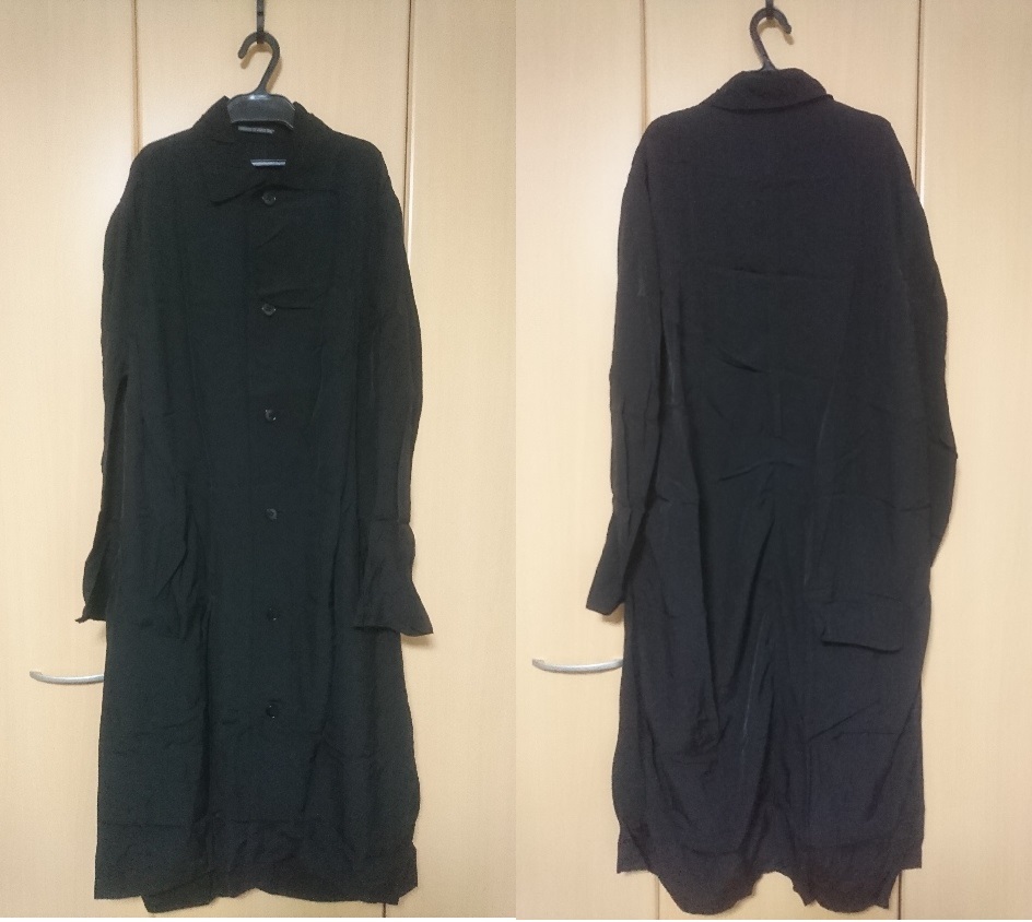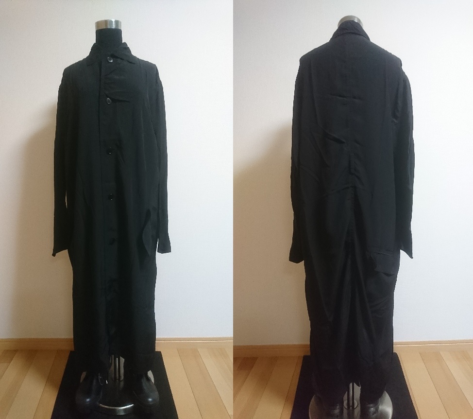 ご覧頂きありがとうございます。ワイズのコート(委託品)になります。色は黒、素材はレーヨン100%、サイズは3、肩幅48cm、身幅61cm、袖丈(脇下計測)43cm、丈(背中心)116cm、後スリット30cm位です。素人採寸との事をご了承下さい。綺麗な方かと思いますがベルトが欠損しております。ユーズドとの事をご理解頂ける方のみご入札願います。ノークレーム、ノーリターンでお願い致します。発送はヤマト運輸でお願い致します。ご連絡は2日以内、お支払いは3日以内でお願い致します。なお出品商品と無関係なご質問、画像転用、値引き交渉はご遠慮下さい。