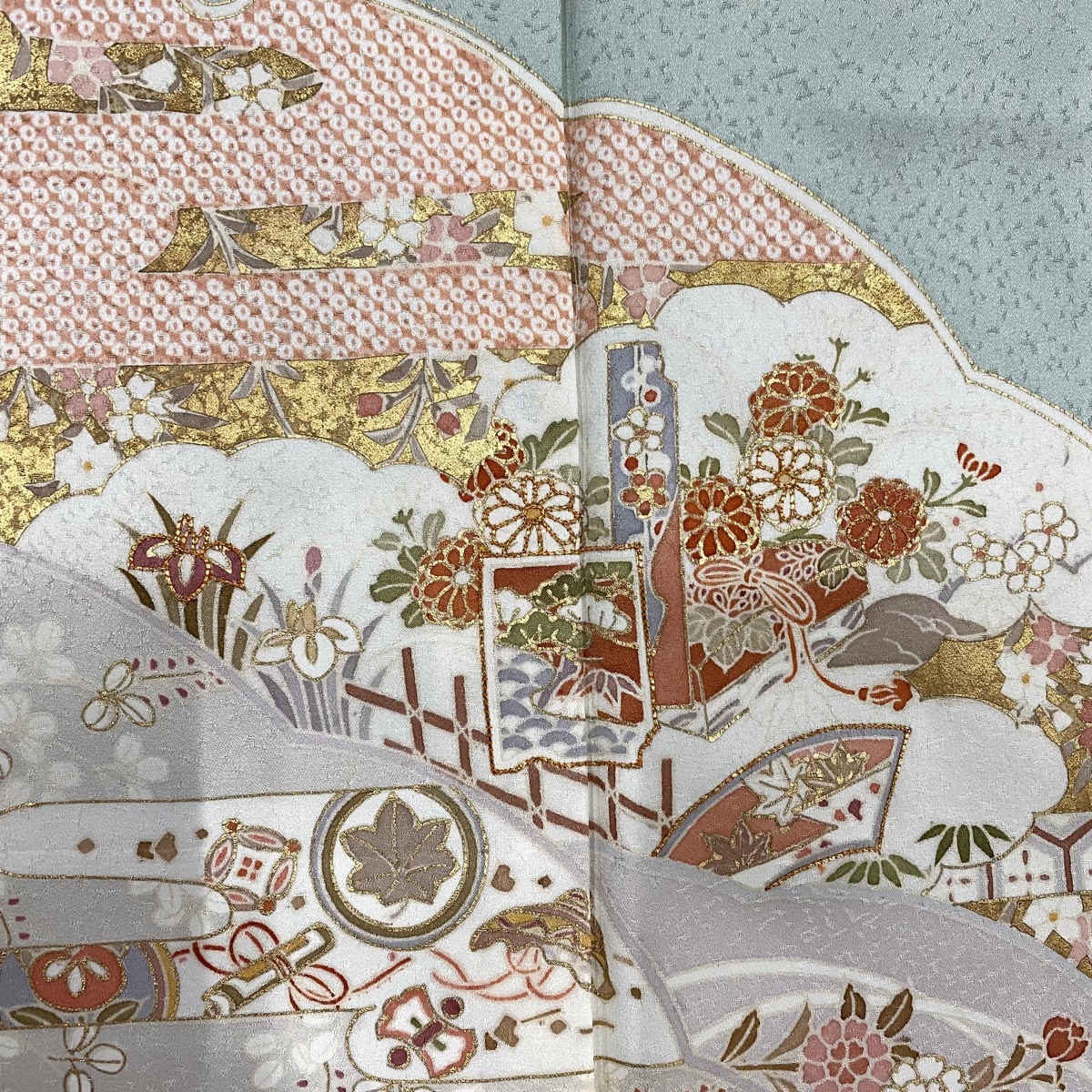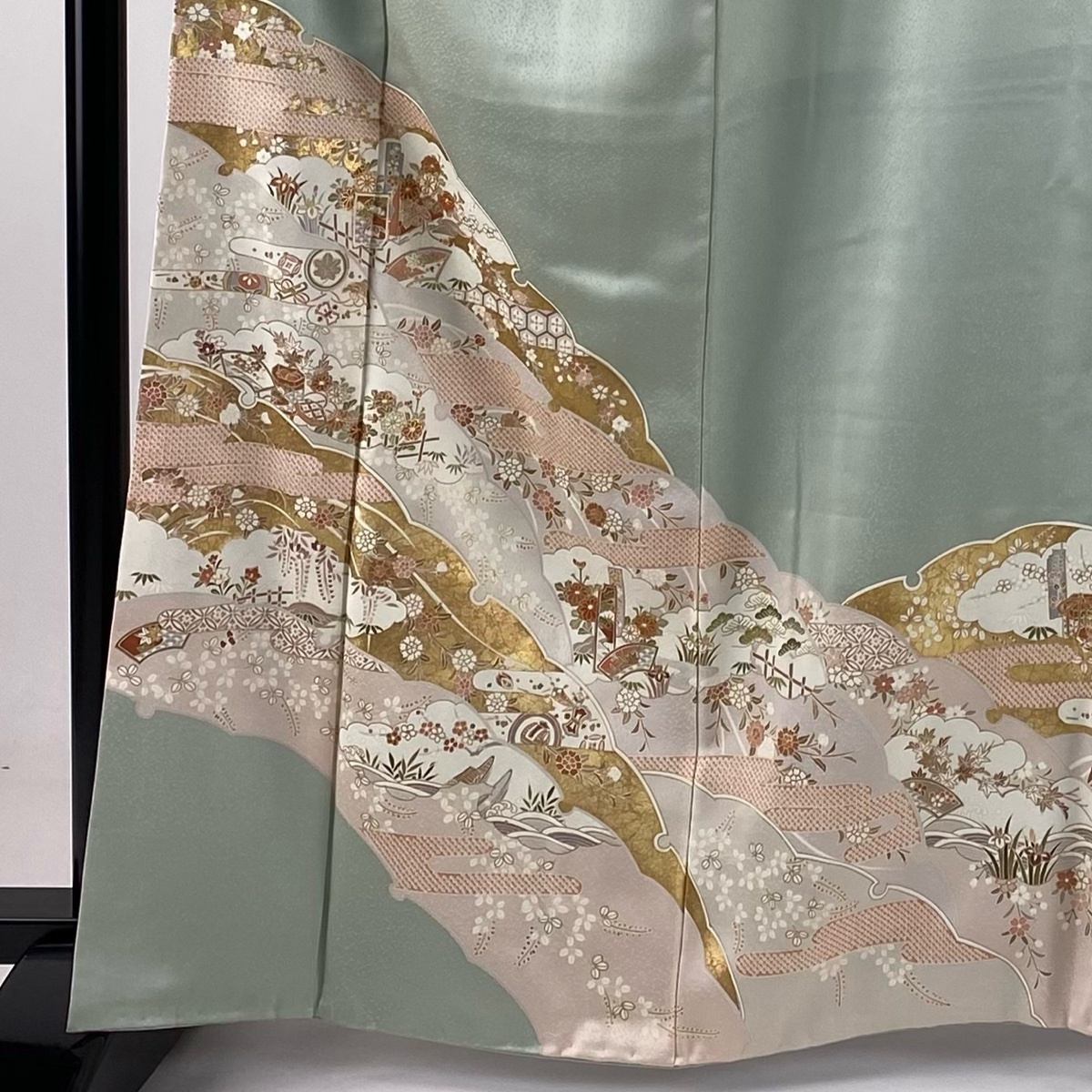 | 訪問着 秀品 雪輪 宝尽くし 金糸 金彩 薄緑 袷 身丈163 裄丈66.5 M 正絹 【中古】 |