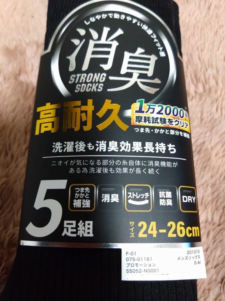 ⑧メンズソックス 5足組 サイズ24~26cm つま先、かかと補強 ストレッチ 消臭 抗菌防臭 DRY