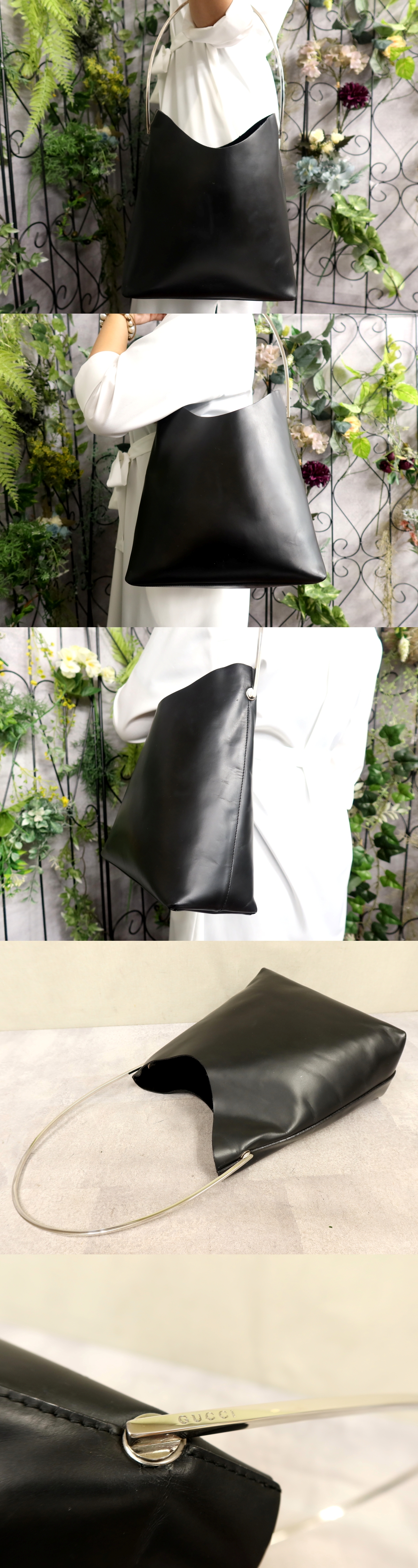 ●超美品●GUCCI グッチ●メタルハンドル●カーフ レザー 本革●ショルダー バッグ●黒●シルバー金具●イタリア製●ヴィンテージ●Js60919