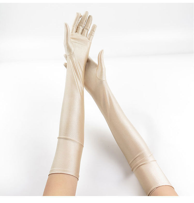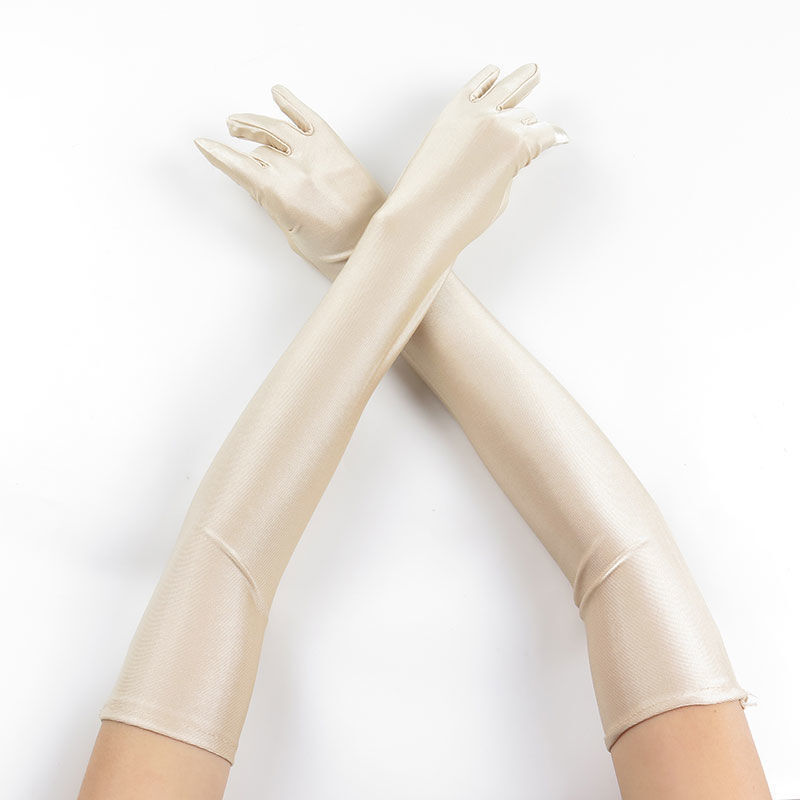 124045半光沢ロング手袋サテン系素材日焼け防止パーティー向けシャンパン