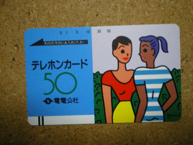 dend・110-002 イラスト原田治 Ⅱ版 バー下付 裏 緑の電話文字なし 電電公社 未使用 50度数 テレカ
