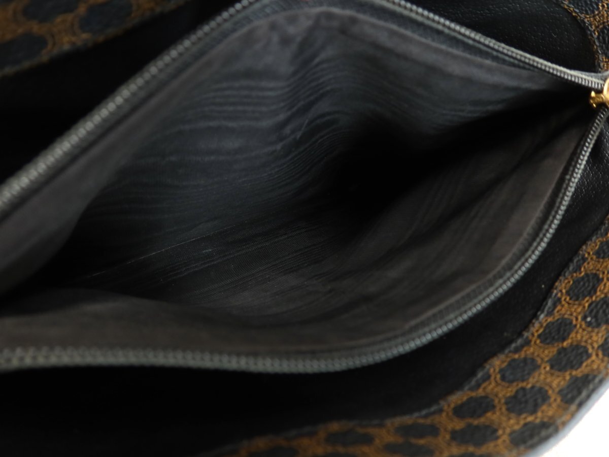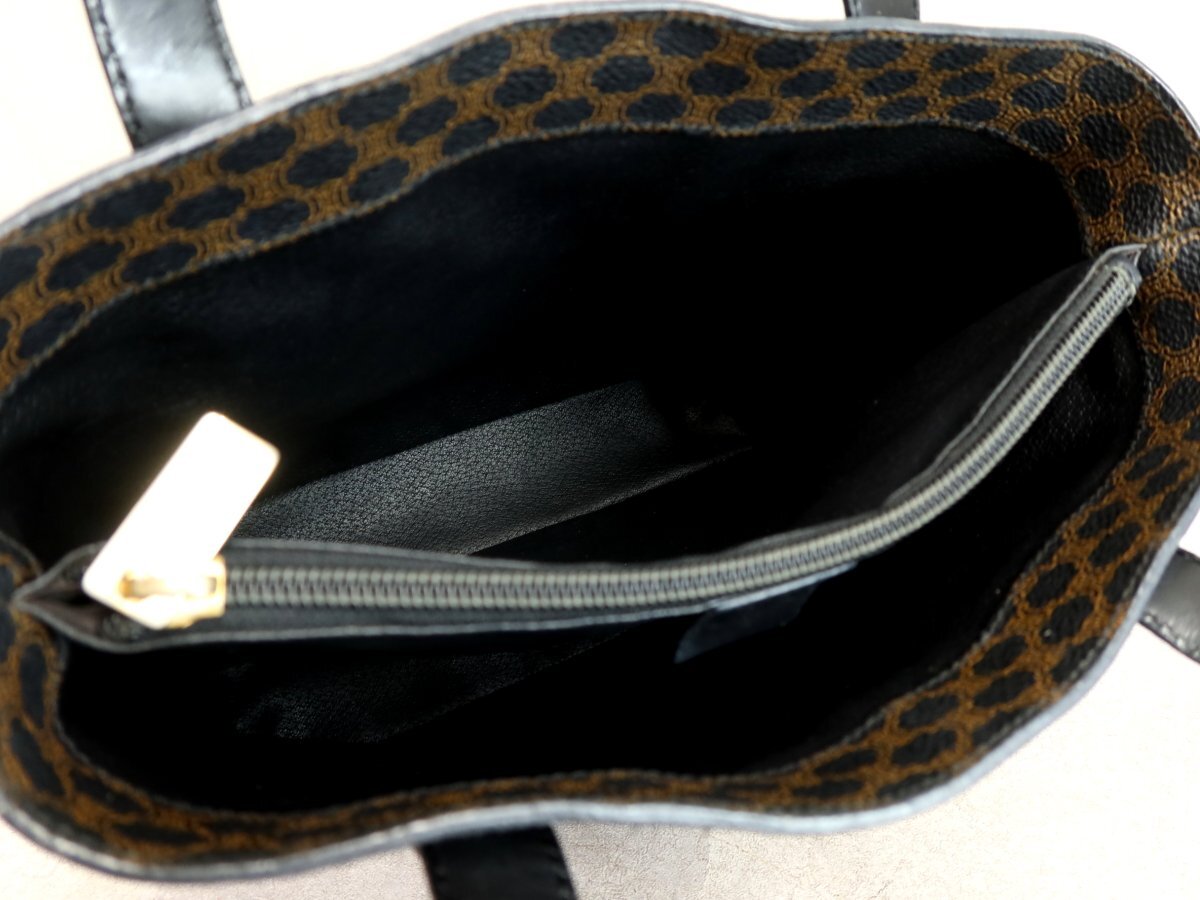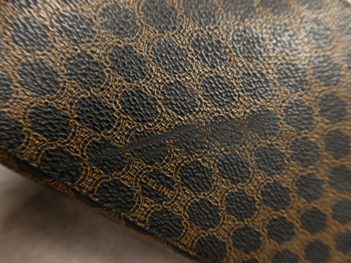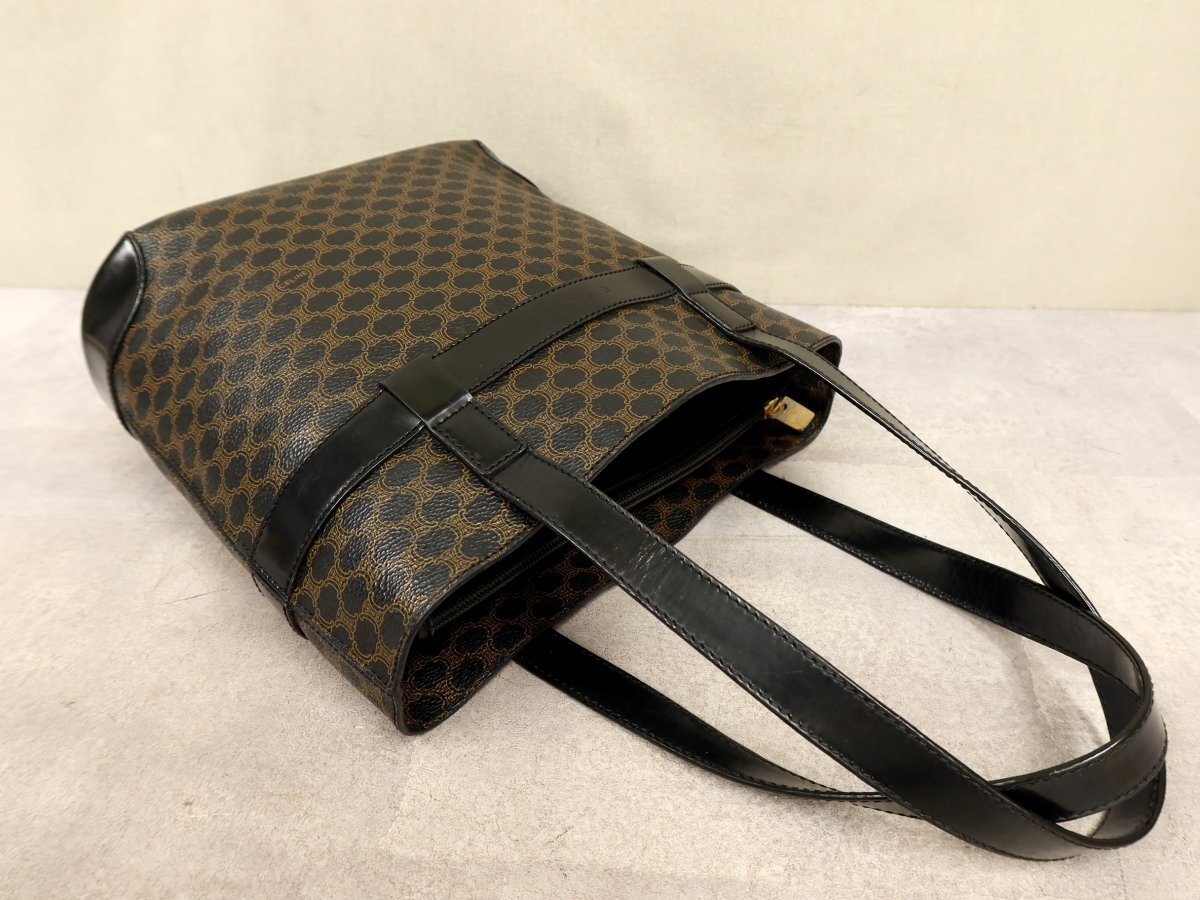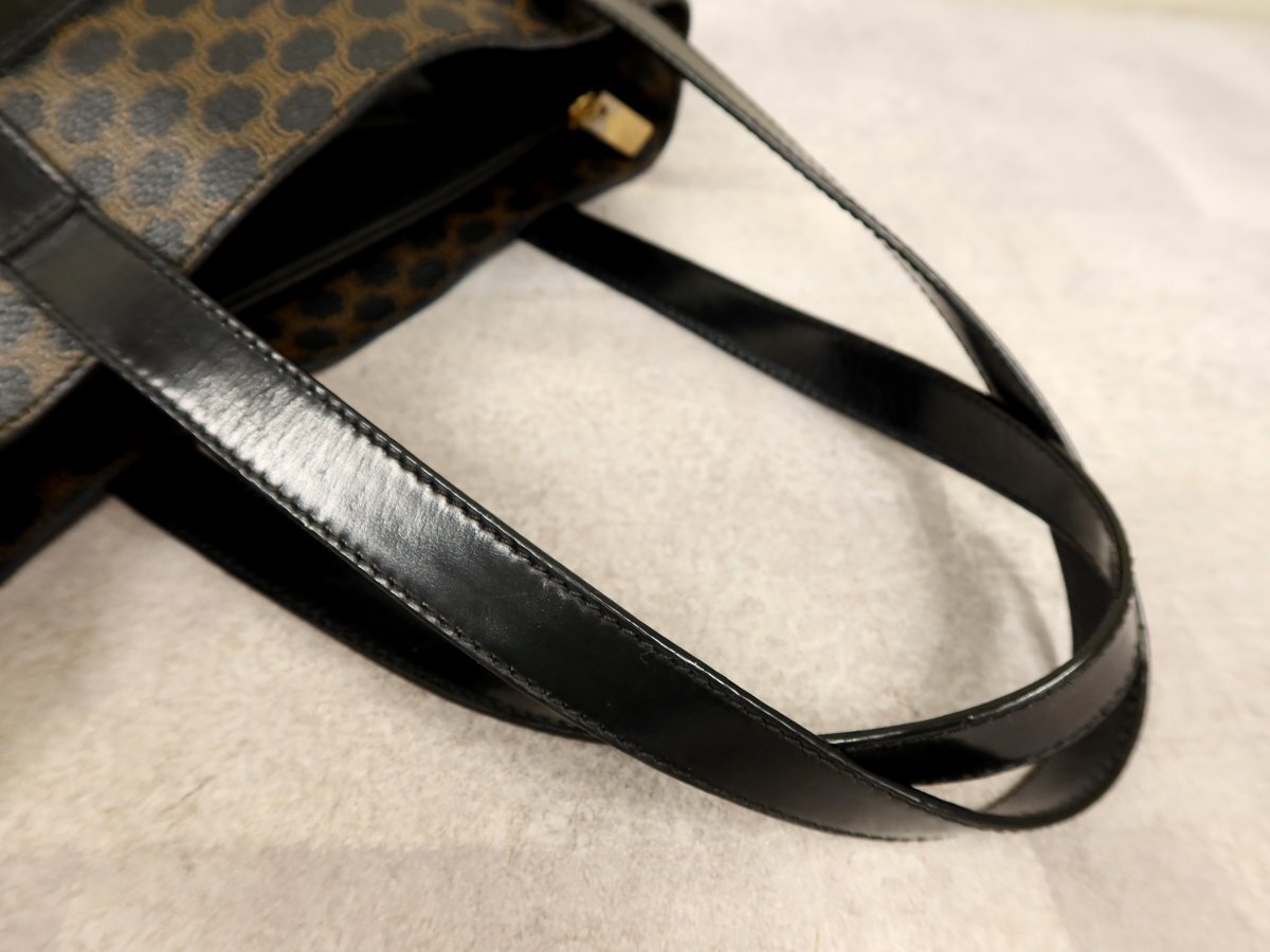 ●超美品●CELINE セリーヌ●マカダム●ロゴ型押し●PVC カーフ レザー 本革●ハンド トート バッグ●黒 ブラウン●ゴールド金具●Js60838