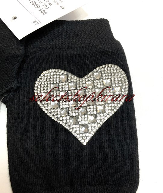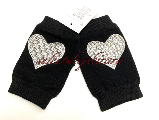 2025新作☆キラキラビジュー付き綿混ニット指抜き手袋☆黒/ハート