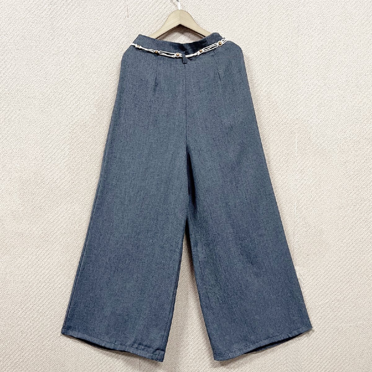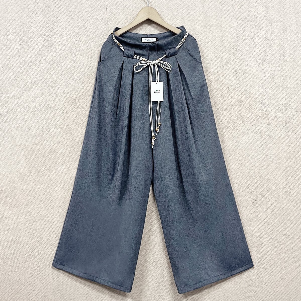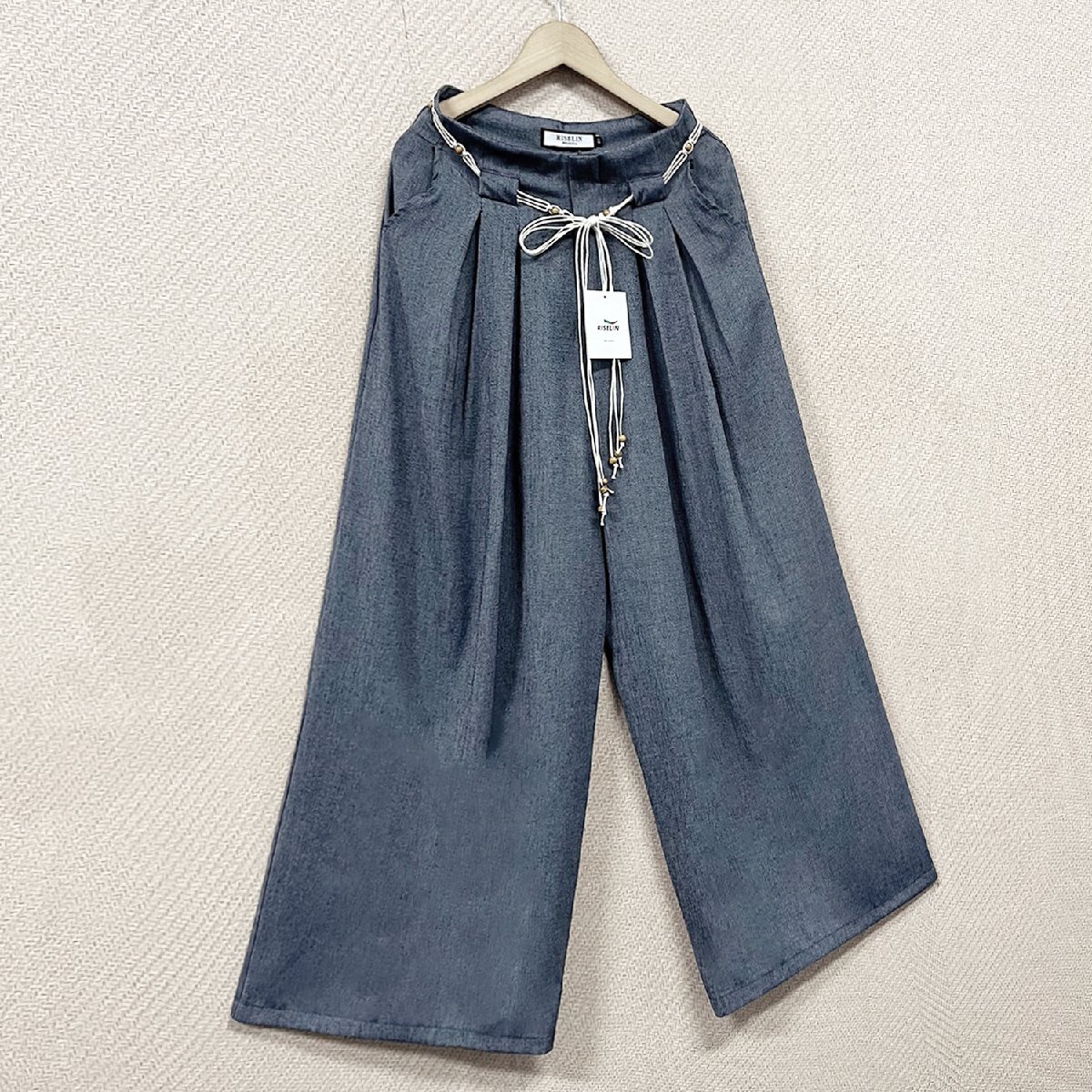 高級ヨーロッパ製※定価4万◆ブルガリア発※RISELIN ワイドパンツ 柔らかい 快適 ゆったり 個性 Aラン ベルト付き 着せ レディース M/46サイズ