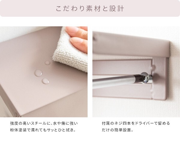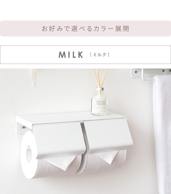 ※現在ご覧の商品ページはピンクのご購入ページとなります。 ヤフオクの仕様上単一ページに複数バリエーションを掲載することができませんので、他バリエーションが希望の場合は別ページでご購入お願い致します。 配達業者を指定いただくことはできません。 北海道/沖縄/離島のお届けに別途中継料金が発生します。 ※別途送料が発生する場合は後ほどご連絡させていただきます。 シンプルでスタイリッシュなデザインが特徴の『TEER(ティール)』シリーズからお部屋に溶け込む可愛いくすみカラーが仲間入り♪ 補充が少ない二連式トイレットペーパーホルダーは毎日のおトイレが快適。取り出しやすいペーパーはサイドから差し込むだけの簡単交換。天板はディフューザーなどの小物や携帯電話のちょい置きにも便利です。 カラーはミルク、グレージュ、ピンクの3カラーをご用意。お部屋の雰囲気やお好みでお選びください。 当店は正規店です。 タイミングによっては在庫切れの場合があります。