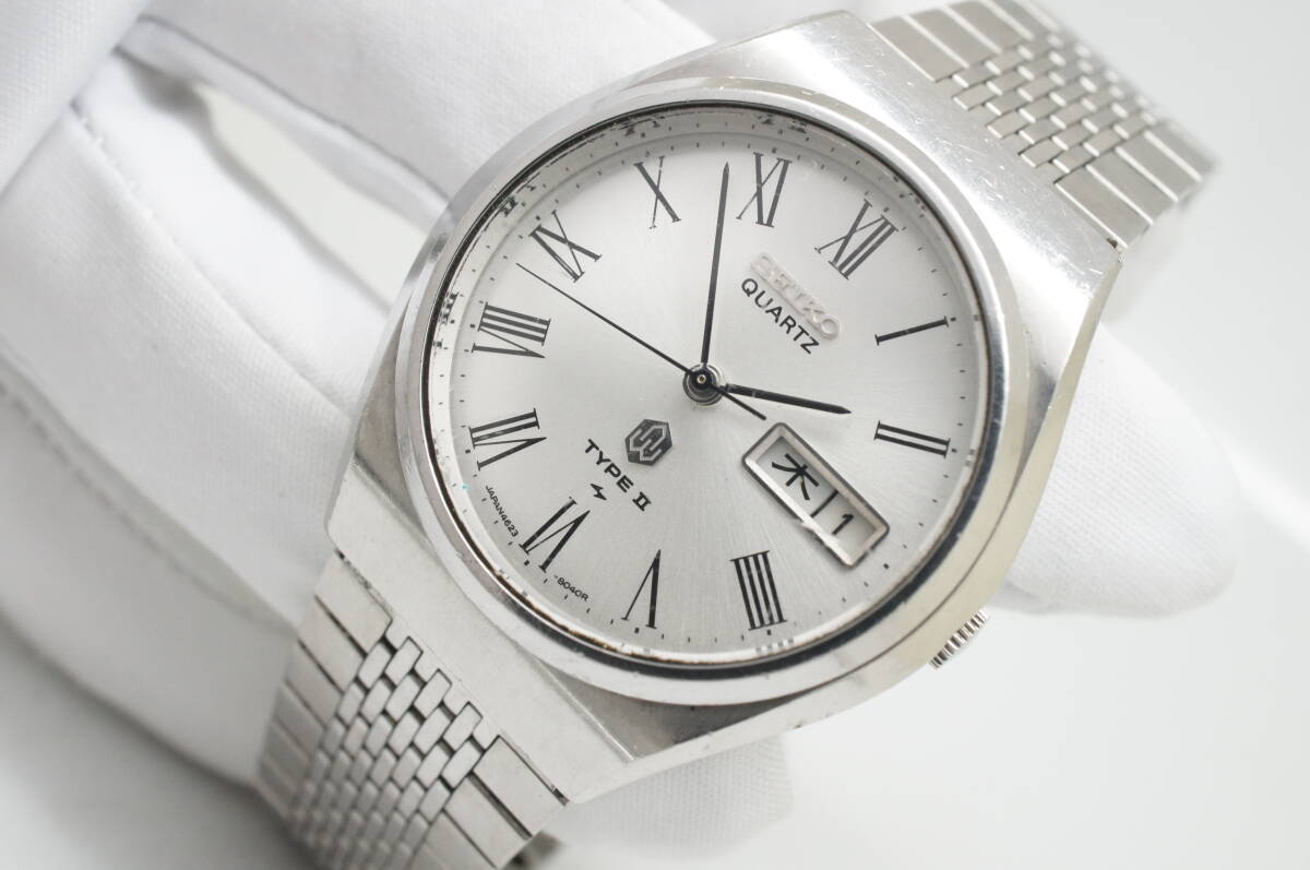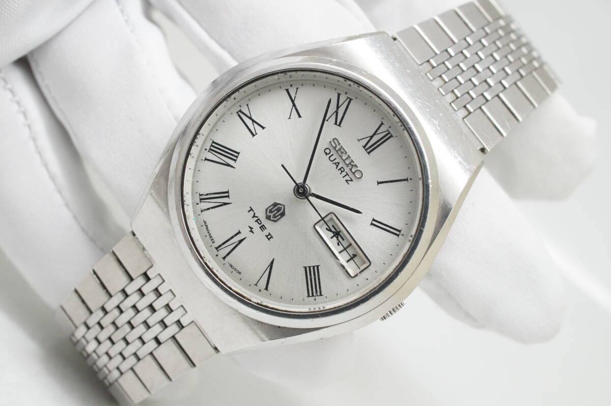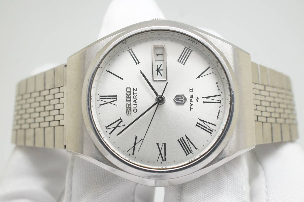 J12●作動良好 SEIKO セイコー TYPEⅡ タイプⅡ 4623-8010 1976年製 ラウンドケース型 デイデイト メンズ腕時計 シルバー クォーツ