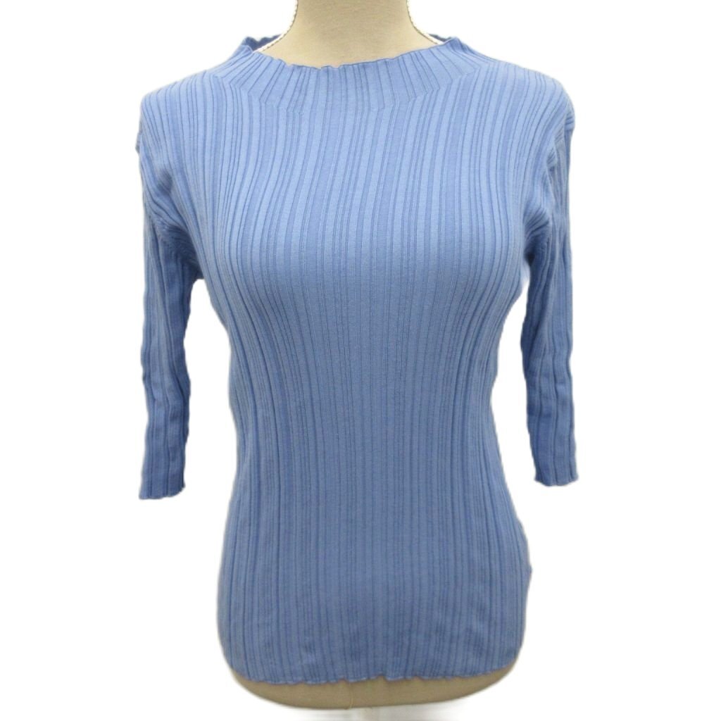グリーンレーベルリラクシング FFC ランダム リブ ハイネック プルオーバー ニット セーター 青 ブルー 3618-119-0367 ■YHS5