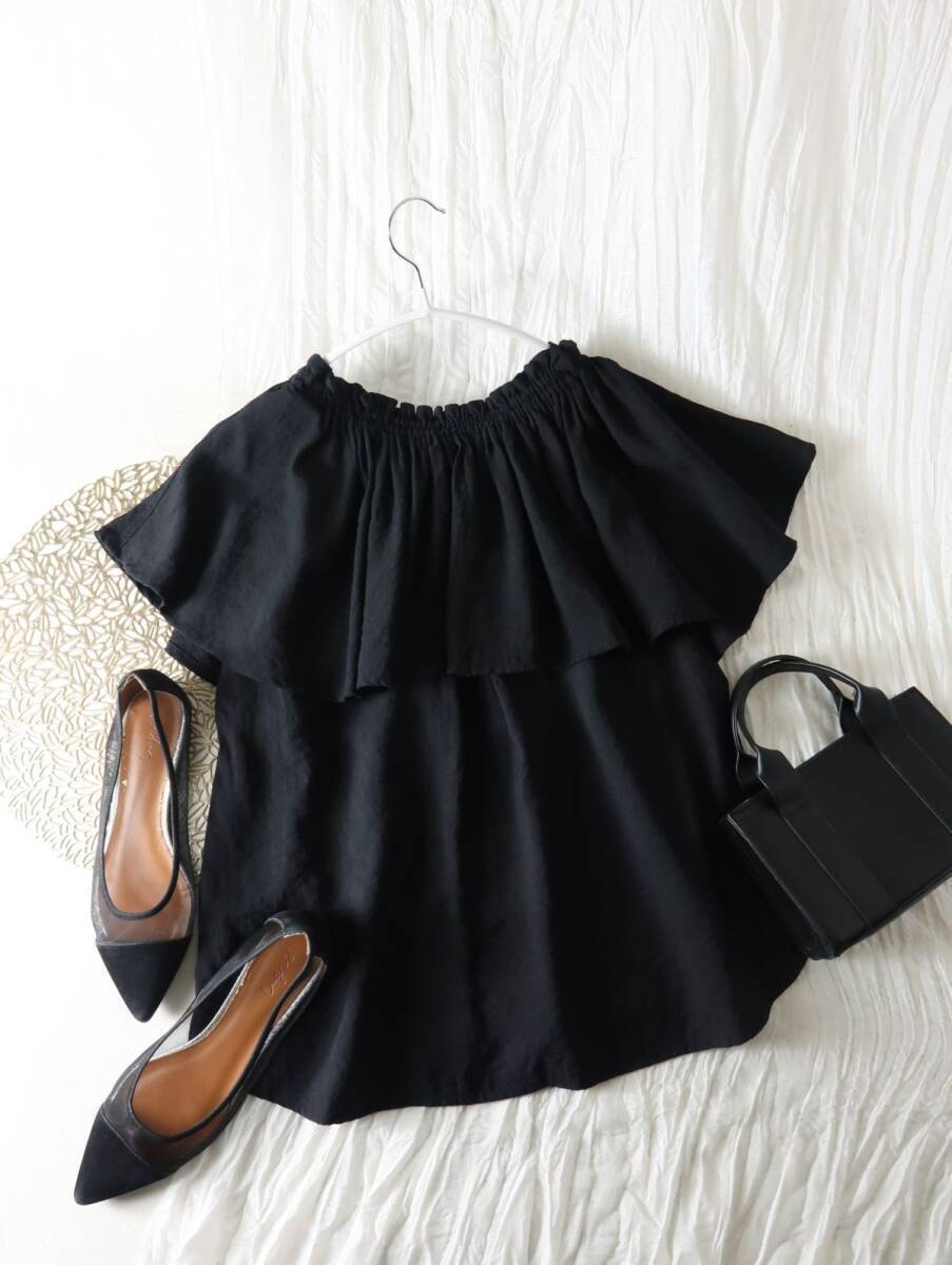 フリル部分はゴムが入っているのでオフショルの時にしっかり止まってくれてズレないのが嬉しいポイントです。