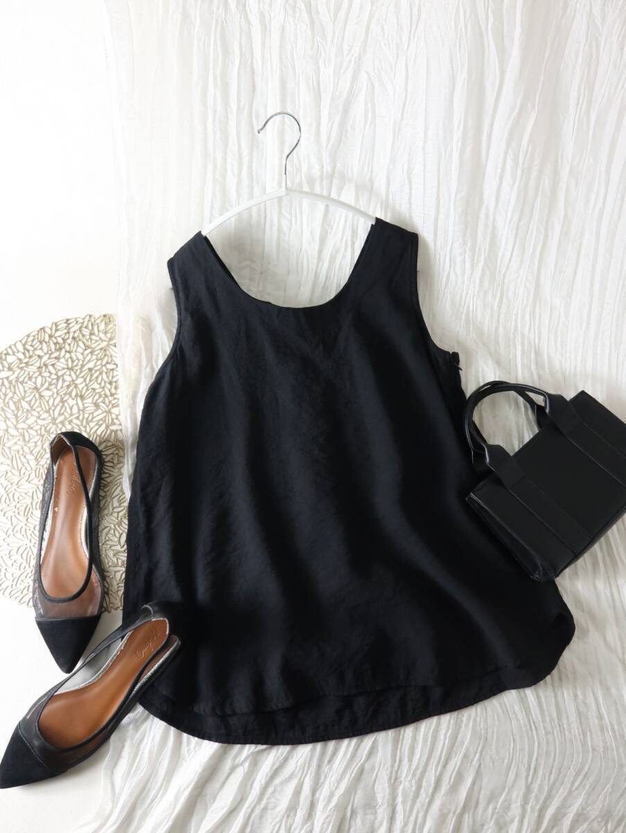 オフショルダートップス、単品でノースリーブブラウス、フリル部分を付け裾としてと様々なコーデを楽しんでいただけるアイテム。