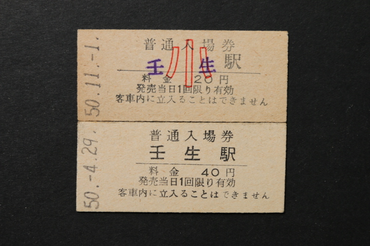 東武鉄道入場券 壬生駅 大人券小児券2枚セット 40