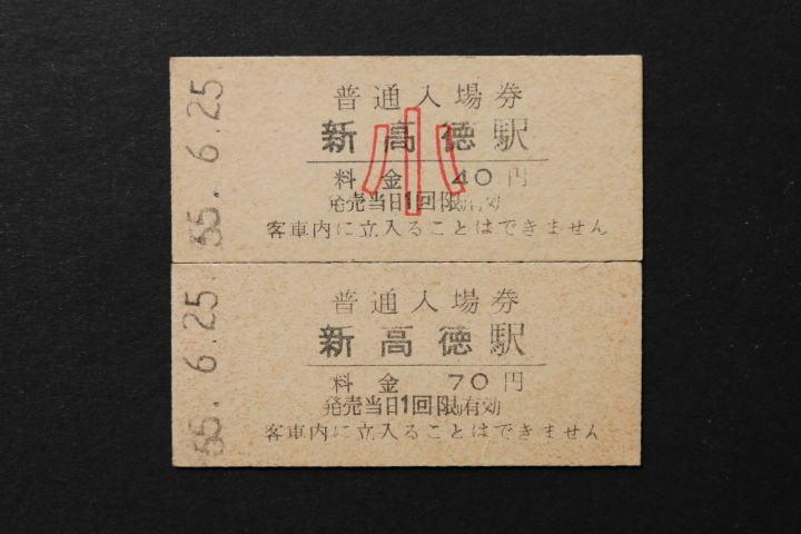東武鉄道入場券 新高徳駅 大人券小児券2枚セット 70