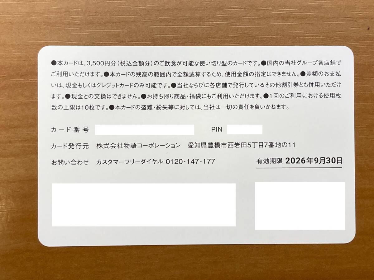 物語コーポレーション株主優待カード4枚 14,000円分(3,500円×4枚) 有効期限:2026年9月30日 焼肉きんぐ 丸源ラーメン ゆず庵