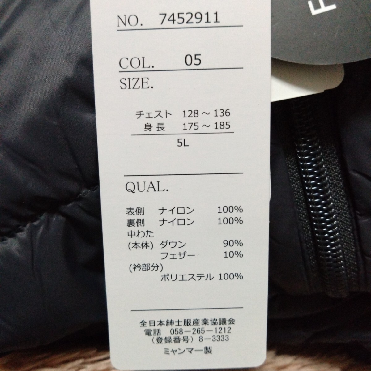 ①ダウンベスト メンズ 5Lサイズ 軽量 撥水加工 防風 透湿