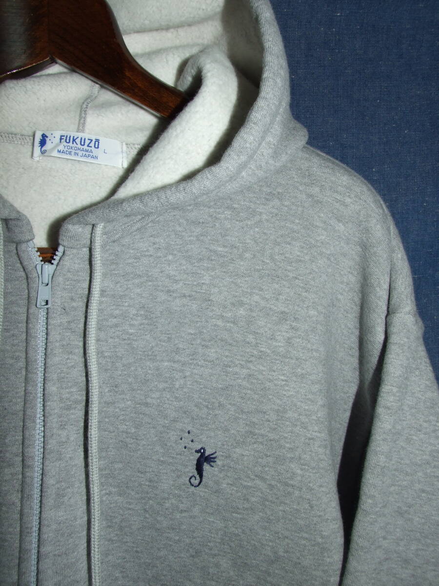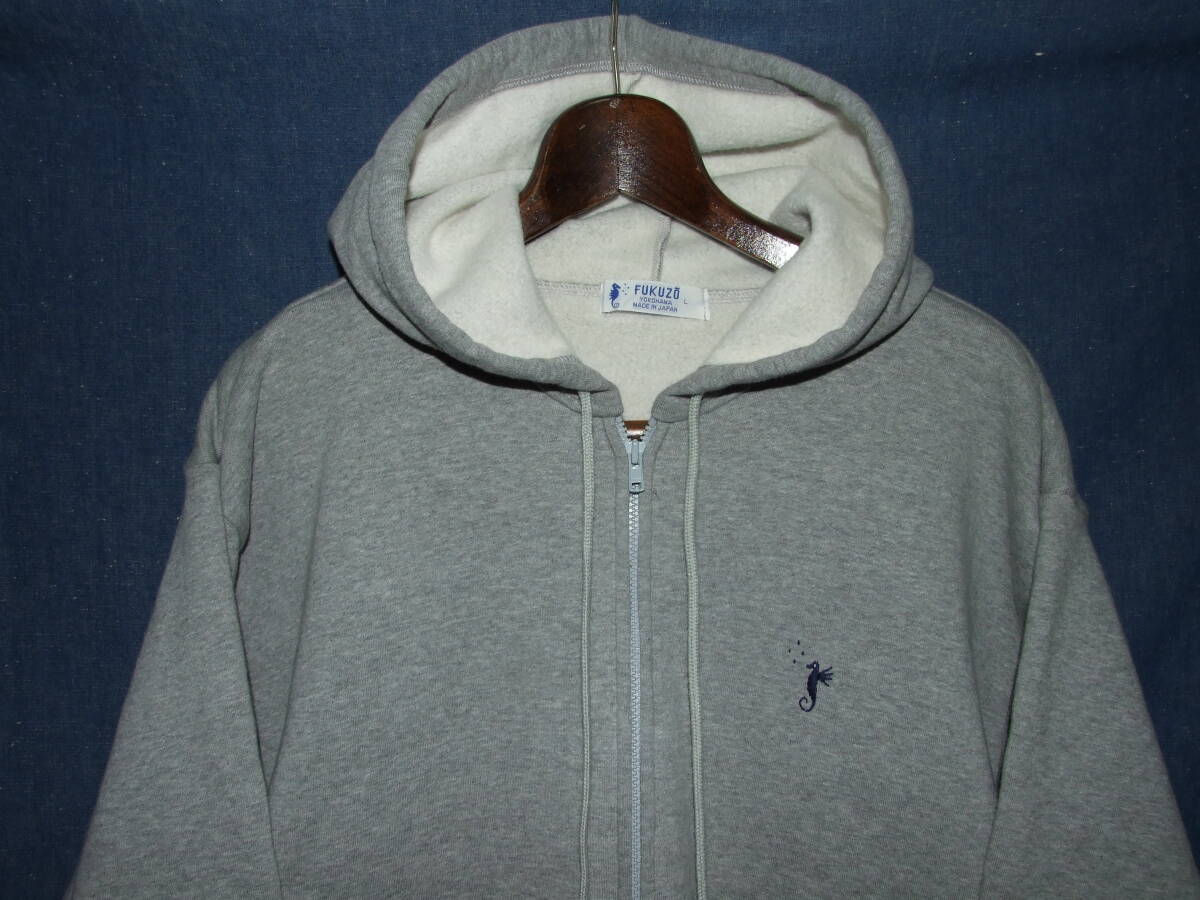 横浜元町のFUKUZO/フクゾーのフルジップパーカ、着用品です。表記サイズはL,実寸着丈75/肩幅53.5/袖丈62.5/身幅65.5程でした。元町と言ったら的なショップですでハマトラといえばキタムラのバッグ、ミハマの靴と並び三種の神器といわれるブランドです。着用品となりますので多少の使用感はございますが、とびぬけて目立つような大きなダメージはございませんので、気になる方がいらっしゃればどなたか使って下さい。