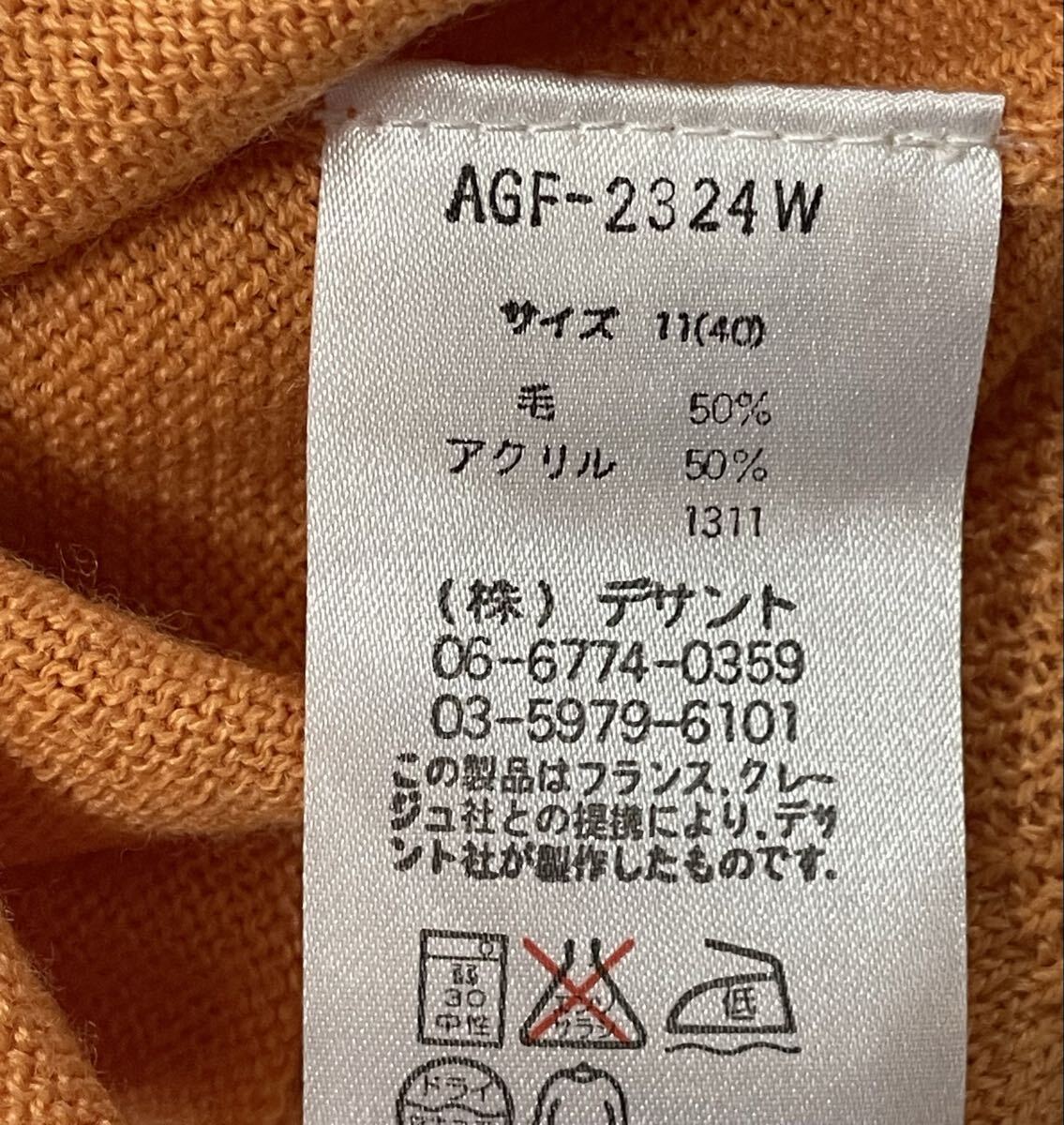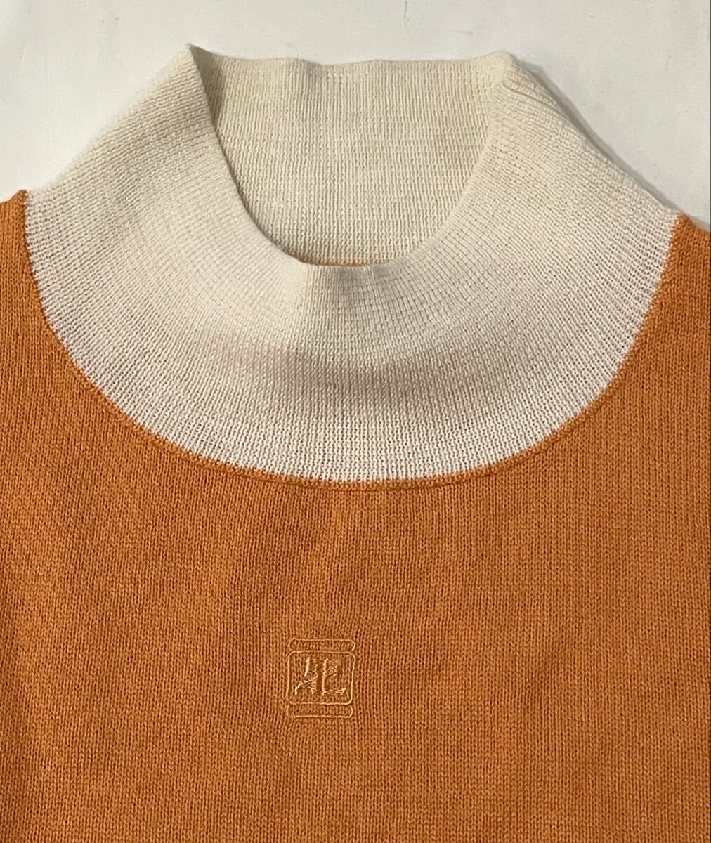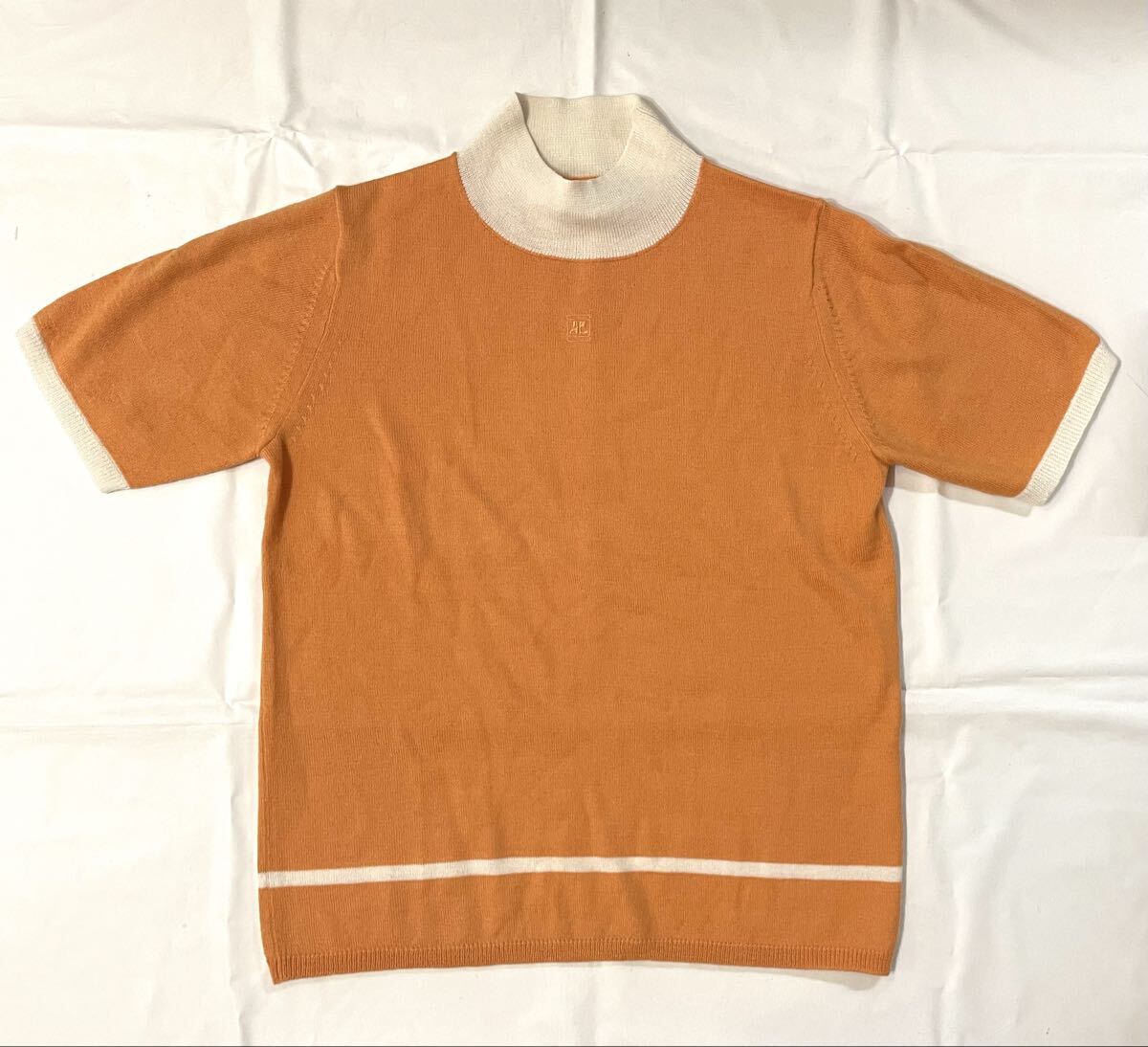 courreges クレージュ ハイネック ウール半袖ニット オレンジ系 40