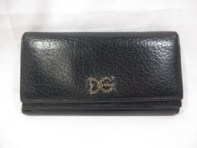 美品 【ドルチェ&ガッバーナ DOLCE&GABBANA】 レザー 長財布 ウォレット (メンズ) シボ革 ブラック 収納力◎ ◇3LE3900◇
