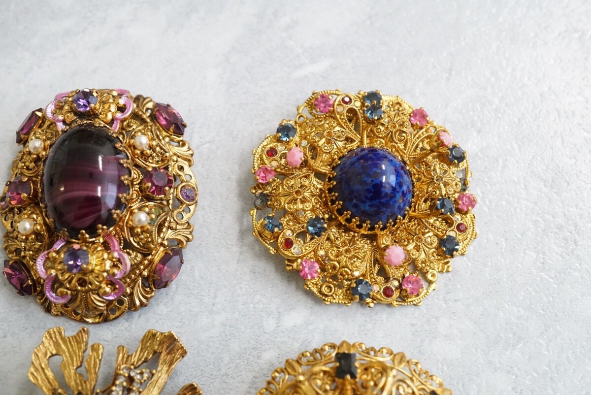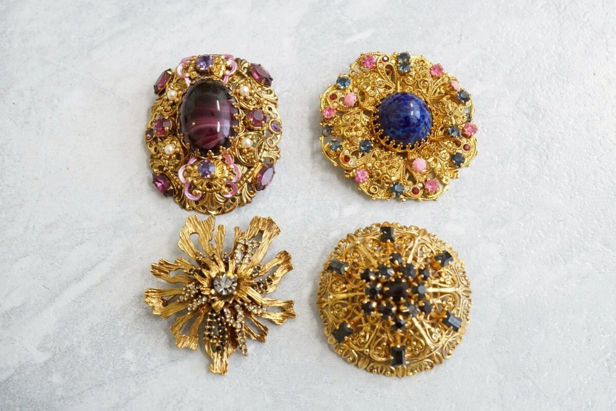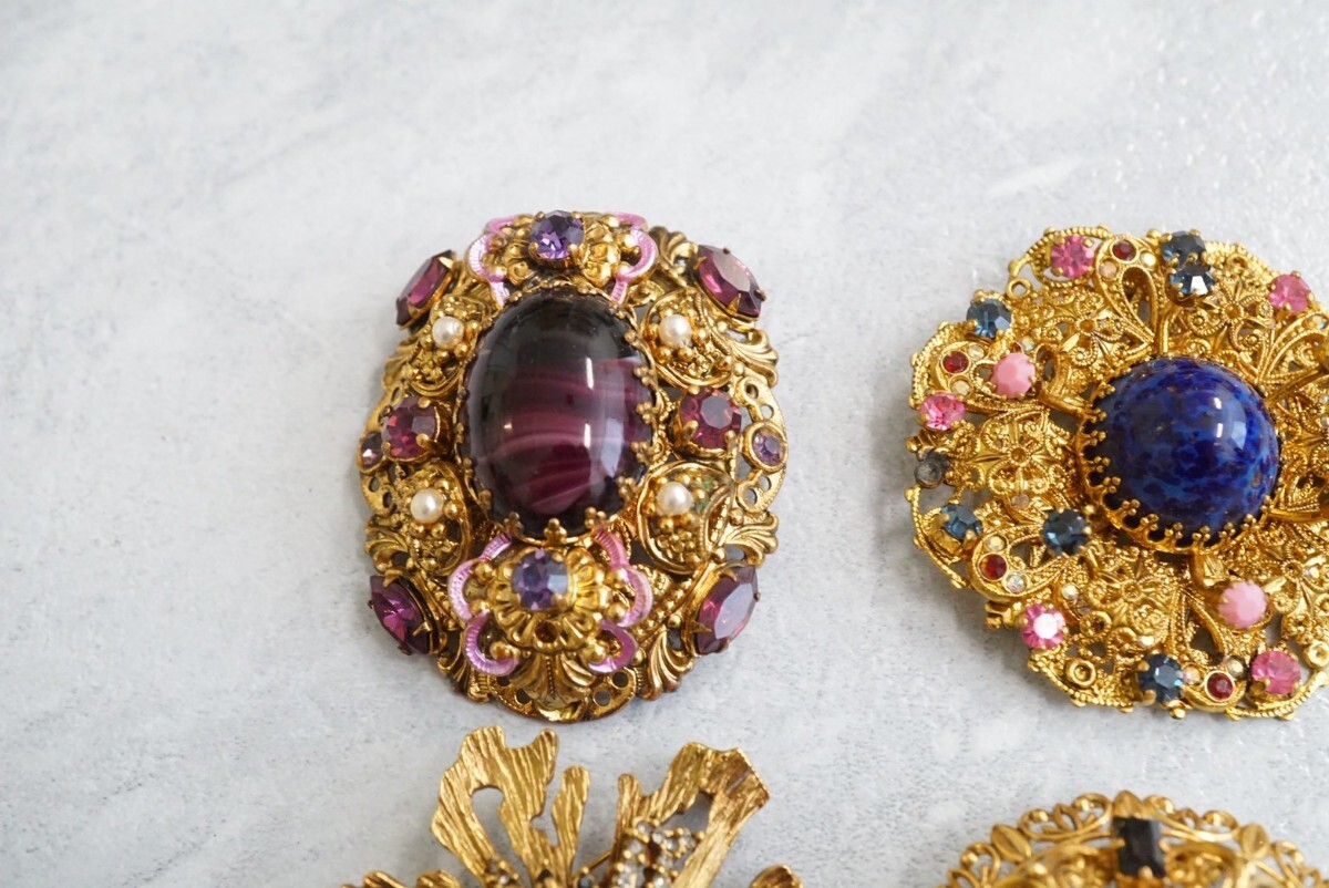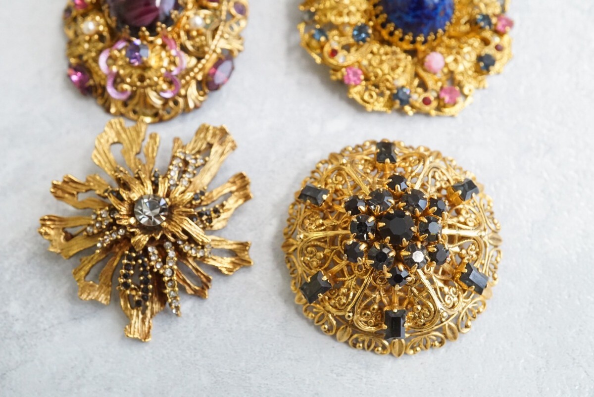 B465 海外製 ラインストーンなど ゴールドカラー ヴィンテージ ブローチ アクセサリー アンティーク 大量 まとめて おまとめ まとめ売り