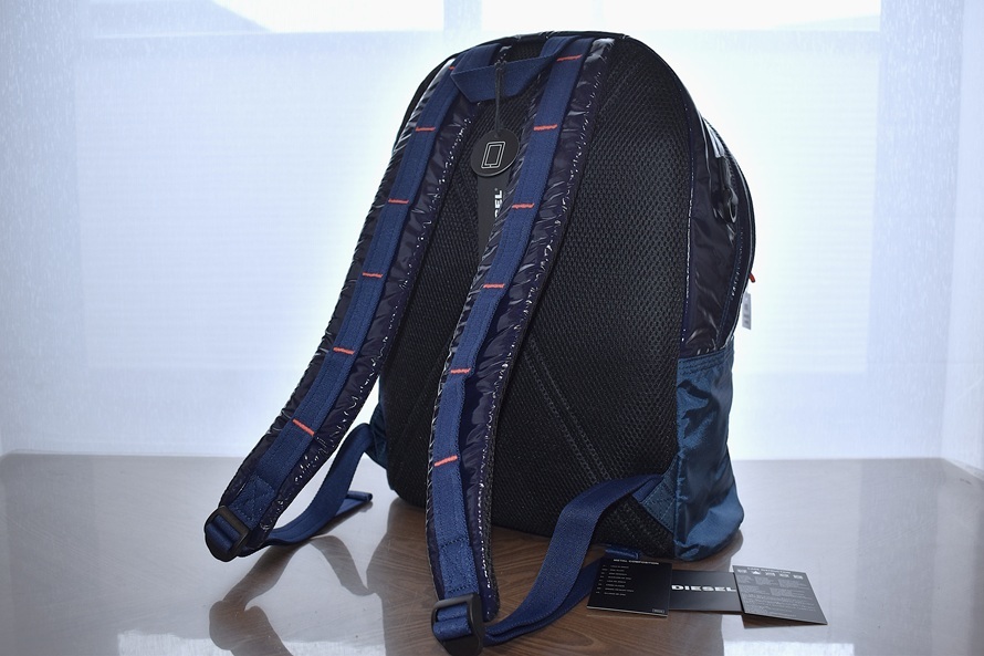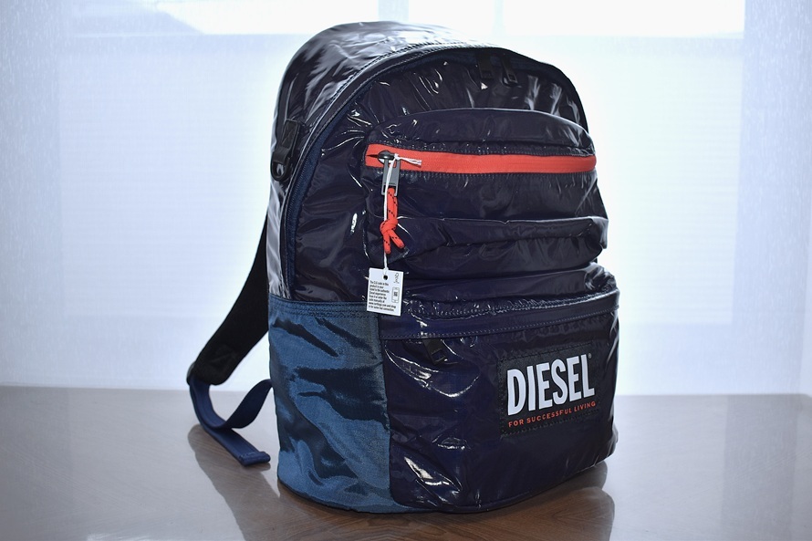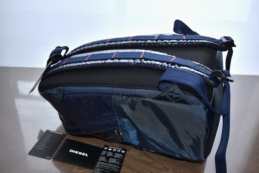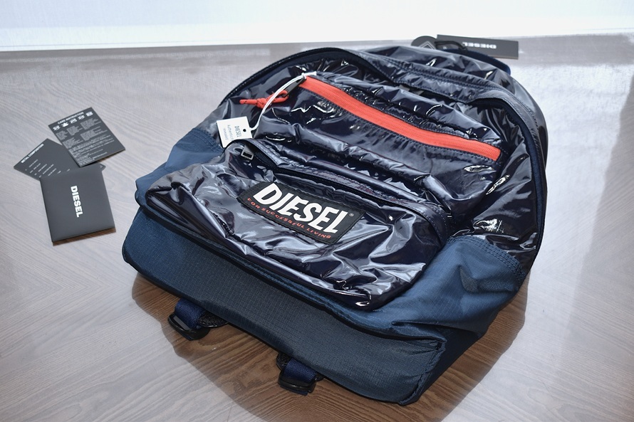 DIESEL ディーゼル RODYO PAT ロディオパット ORYSシリーズ 15インチPCスリーブ搭載 シャイニーコーティング リップストップナイロン バックパック / リュックサック / デイパック【ダークネイビー系/型番X08015】です。