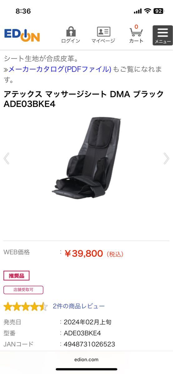 【新品未使用】ATEX アテックス マッサージシート DMA ADE03BKE4 ブラック