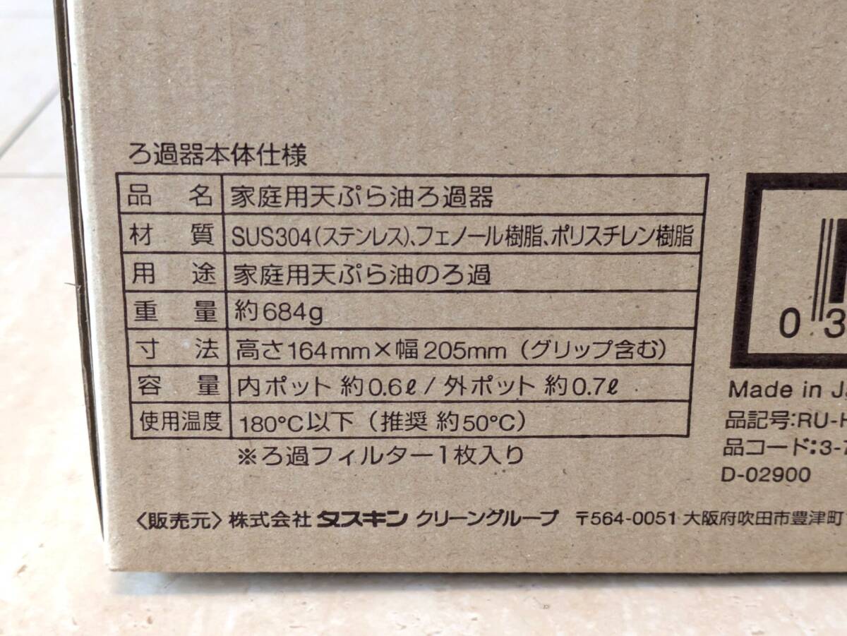 Й★DUSKIN ダスキン★油っくりんナイス★天ぷら油ろ過器★0.7★オイルポット★ろ過フィルター付き★エコ★箱入り★未使用品★