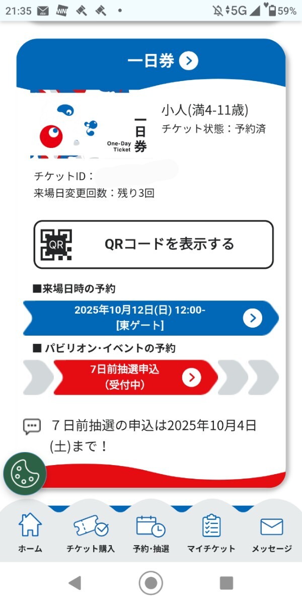 落札後に電子チケット専用のURLを送りますので、事前に万博IDのご登録をお願いします。