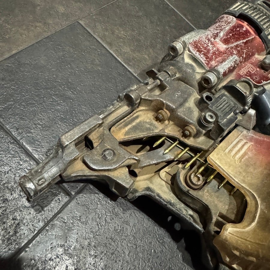 打ち込み正常 エア漏れなし エアダスタ正常 打ち込み深さ調整正常 商品は、写真に映るもののみです。 中古品の為、とりきれない擦れや汚れ、サビ、痛み等の使用感がございます。 実際の現場作業のような長時間での連続作業は試しておりません。 上記よりノークレーム・ノーリターンでお願いします。 仕様 新・風量調整エアダスタ機構(PAT.P) ・片手で調節、風量調整機構付 ・ホコリを外に引き飛ばしたいときに強く! ・ホコリを舞い上げたくないときは弱く! ・ボタンの押し加減でお好みの風量調整が可能! ・ボタンを押すストロークで、風量は調整可能に! 軽量2.0kg エアダスタ部の構造の変更により、エネルギー値UP(従来機比3%UP)とロングドライバ搭載によるドライバ出量UPで、従来機より軽量化を実現。 部品交換・切替なしで79種類※の釘を打つ! 釘足先ガイド+コンタクトノーズ ※カラーバリエーション含む 打ち込まれる瞬間の釘の姿勢を矯正する釘足先ガイドと、打ち込み時の反動にも釘が部材に入り込むまでしっかりと 支えるコンタクトノーズで、在来・2×4から、石こうボード・鋼製束施工など、用途・サイズの異なる釘も部品交換 なく正確な打ち込みを実現します。 打ち込み力アップで深く沈める! エアダスタ部の構造の変更により、エネルギー値UP(従来機比3%UP)とロングドライバ搭載によるドライバ出量UPで、従来機より釘を深く沈めることができます。 ◆出品商品が中古品の場合の注意点◆ ・神経質なお客様、新品の様な使い心地を期待される方はご入札をお控え下さい。 ・外観を特に気になさる方は、ご入札をご遠慮頂けますようお願い致します。 ・ご入札は商品の状態・内容をご理解頂けたと判断させて頂きますので、必ず熟読をお願い致します。 |