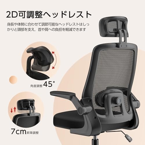 オフィスチェア 椅子 デスクチェア 疲れない人間工学 跳ね上げ式アームレスト 2Dヘッドレスト 腰サポート 通気性メッシュ デスクチェア 長時間 座れる お宅 在宅ワーク pcチェア メッシュ パソコン ワーク 事務椅子 (ブラック)