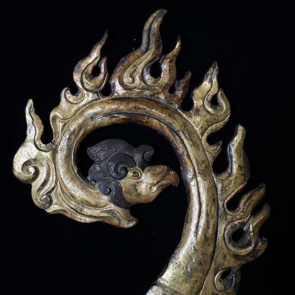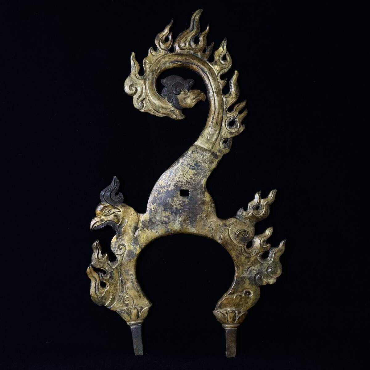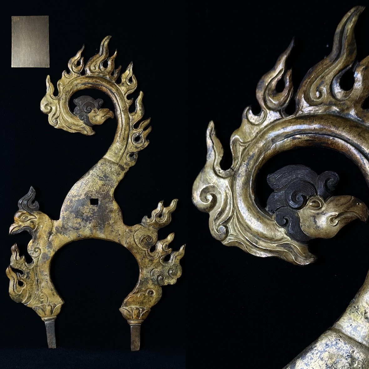 コレクター買取品 仏教美術 古銅製 鍍金 仏像 唐物 鳳凰 仏具 木箱付 金属工芸 細密彫刻 飾物 置物 中国古玩 時代物
