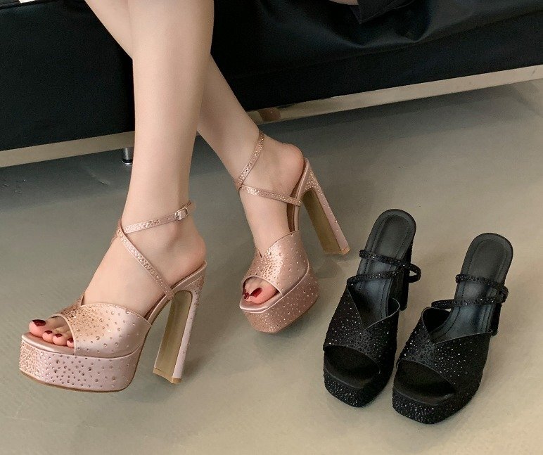 ハイヒールシューズ オフィス 太いヒール 切り替え シンプル 【36】22.5~23cm 色品番1