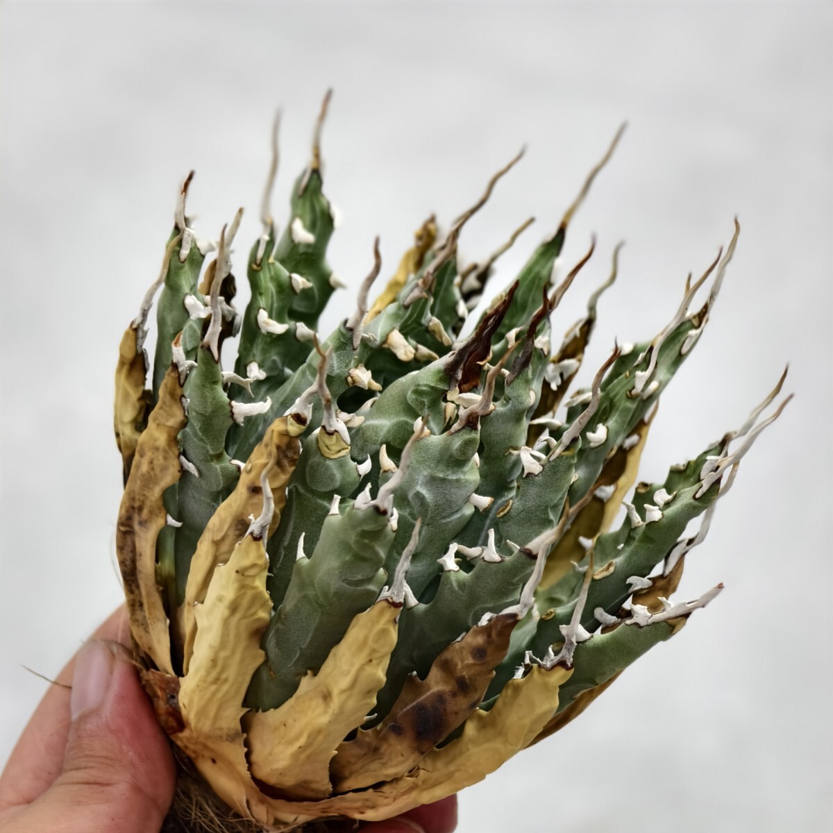 ■梱包等には十分注意しますが輸送中の葉・鋸歯折れ等が生じた場合免責とさせていただきます。(十分注意を払いますが子株の鋸歯は大変折れやすく、また育成においても大きな障害にはなりませんので特に鋸歯折れはご容赦願います。)