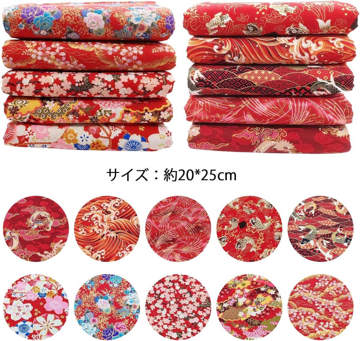 生地 和柄 和柄 布 着物 はぎれ 和風 10枚入り 多様なパターン 桜 花 錦鯉 波 カットクロス 手芸用 はぎれセット DIY 裁縫 20x25cm