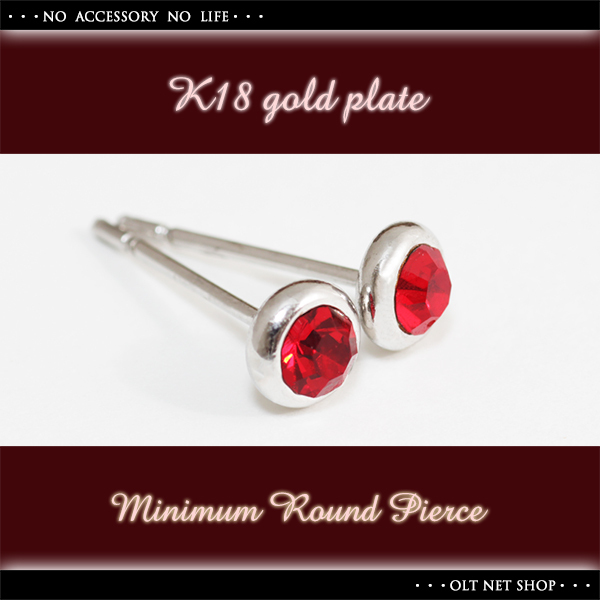 新品/ピアス/K18GP/ガーネット/小さい/小さめ/シルバー/18金/ホワイトゴールド/レディース/両耳/シンプル/CZ/ダイヤ/カラー/赤/WG