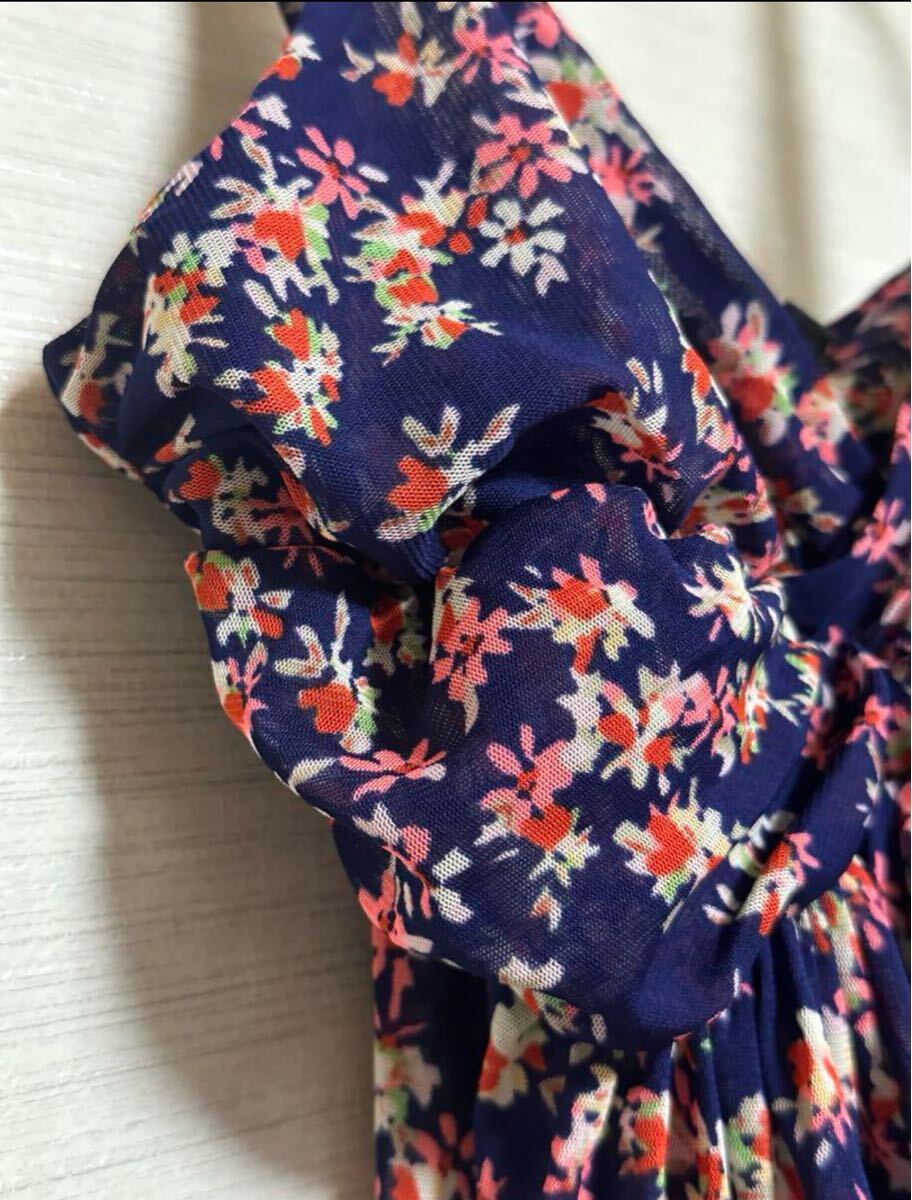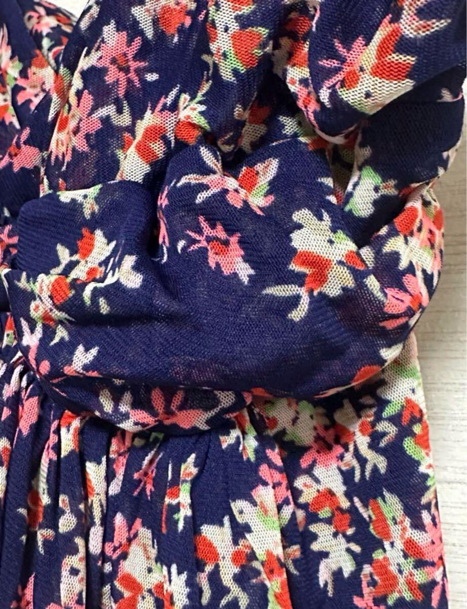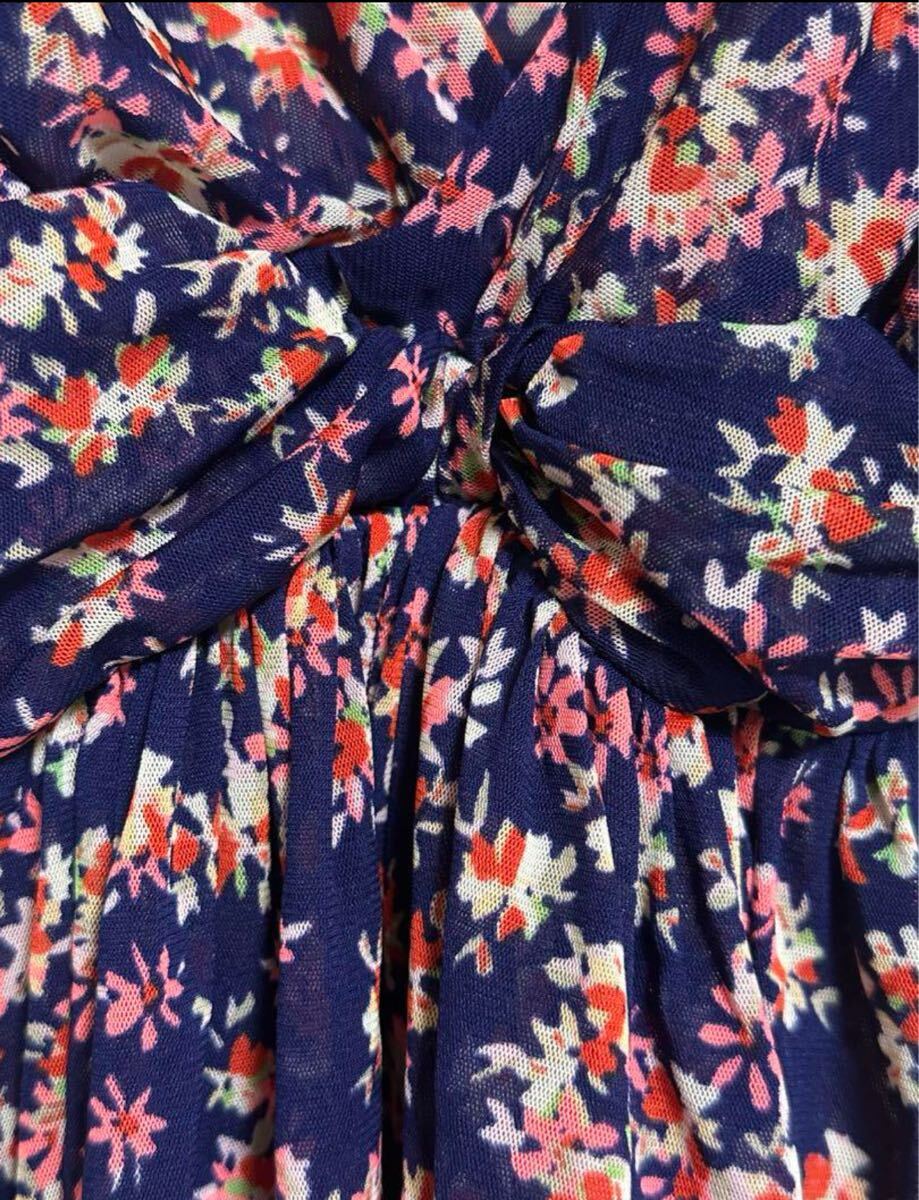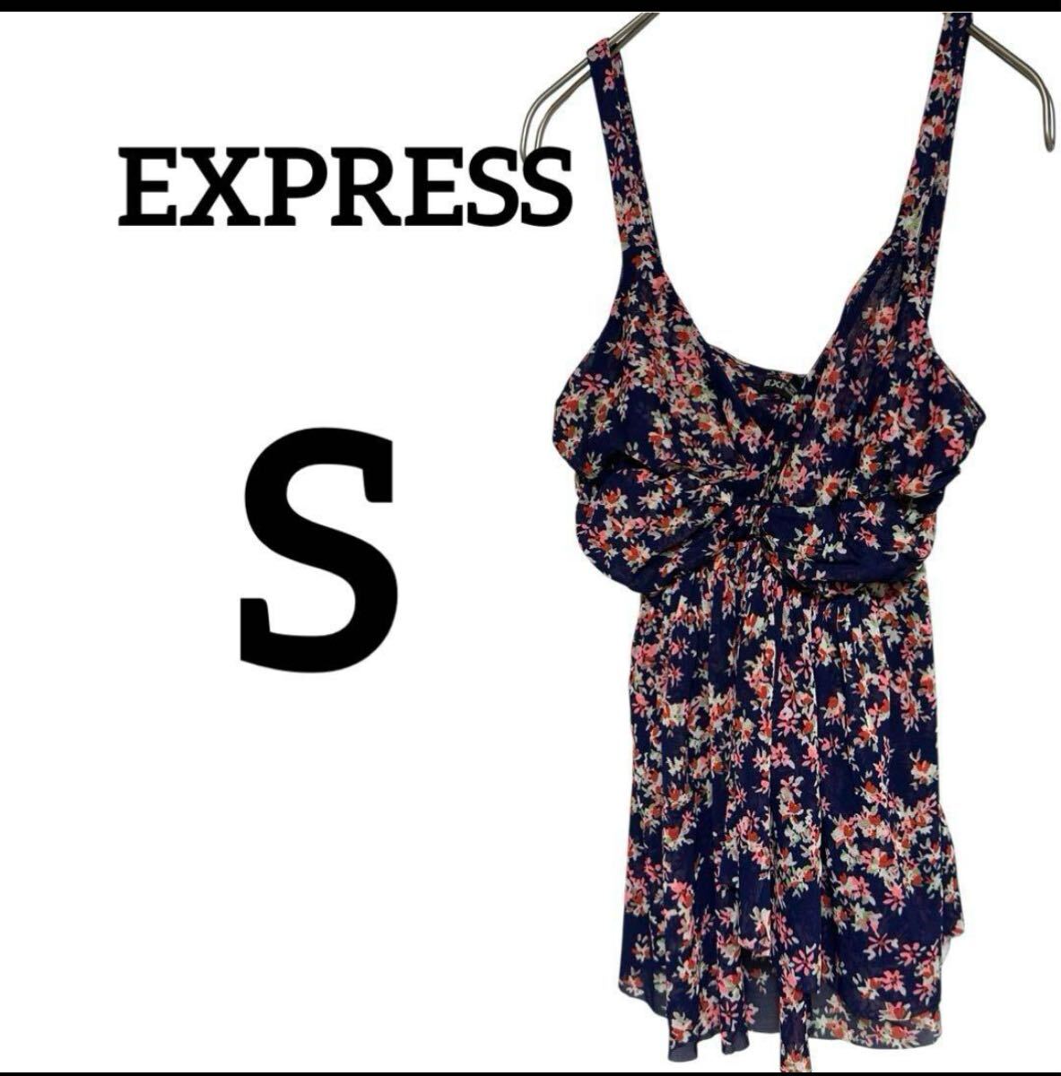 レトロで可愛い花柄キャミソールです。サラッとした透け感のあるシフォン素材で、暑い季節にぴったりの軽やかさ。胸元のツイストデザインと、裾に向かって広がるシルエットが女性らしさを引き立ててくれます。ネイビーベースに小花柄が散りばめられており、甘すぎず大人っぽく着こなせるのが魅力。デニムやシンプルなスカートと合わせるだけでお洒落。