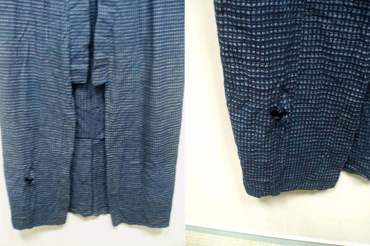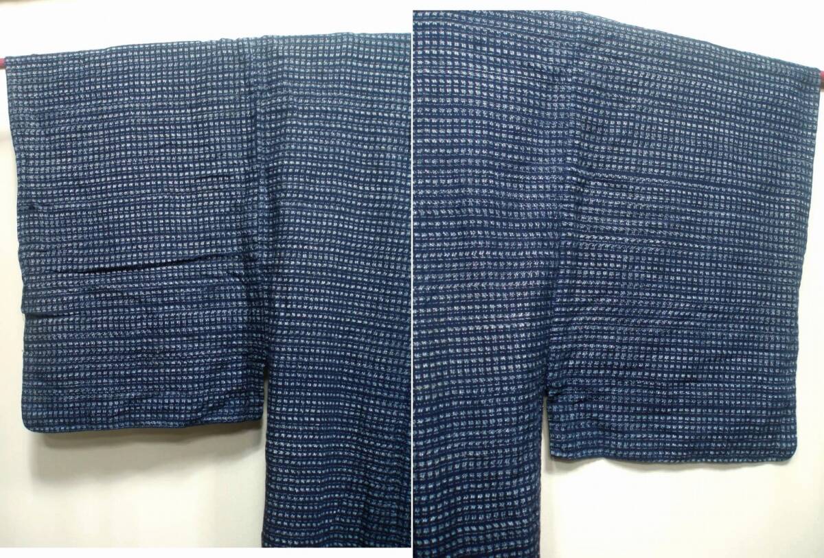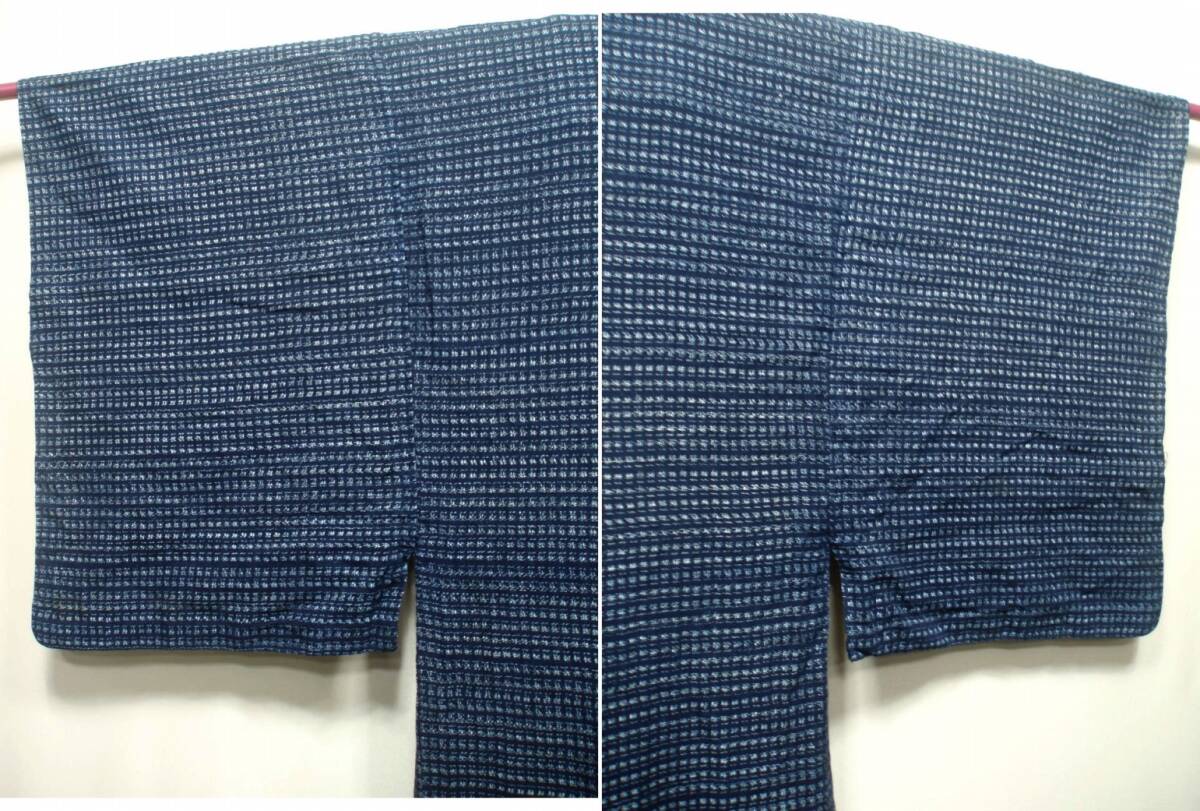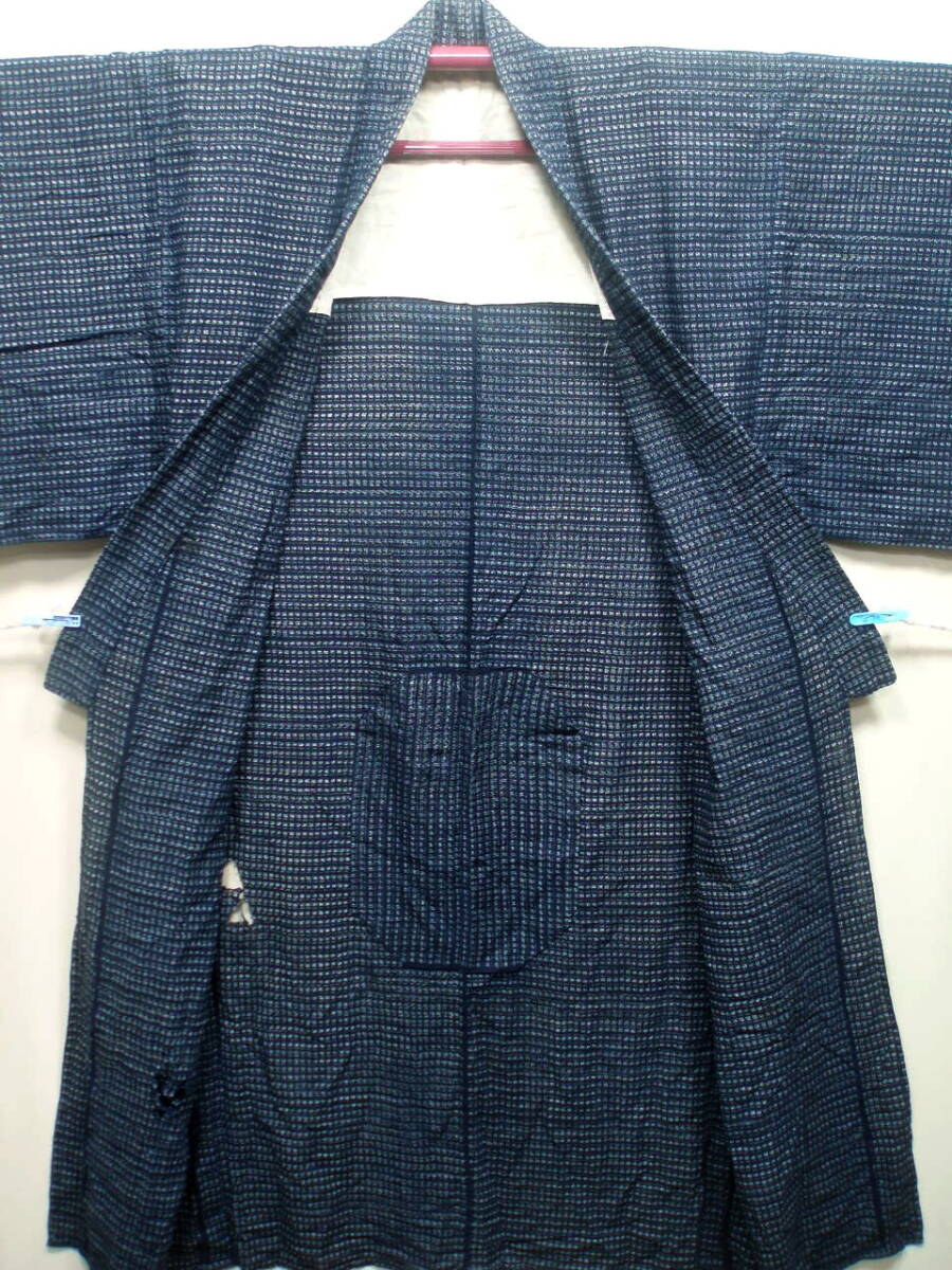"" "M57341【生地取り用 リメイク用 古布 綿 藍 書生絣】男 単衣 着物" |