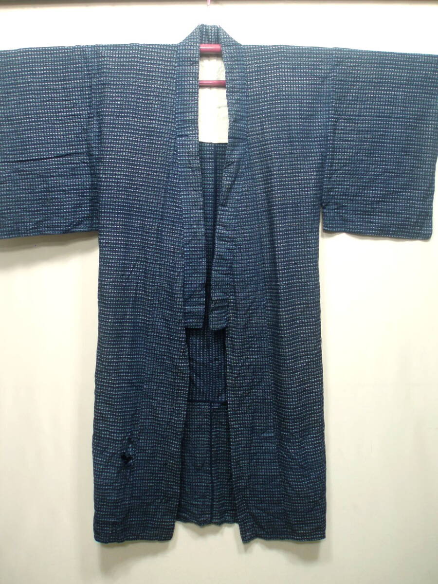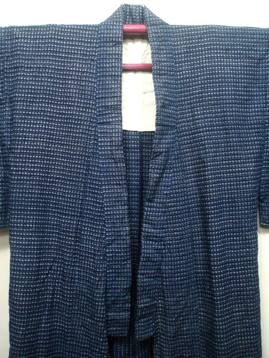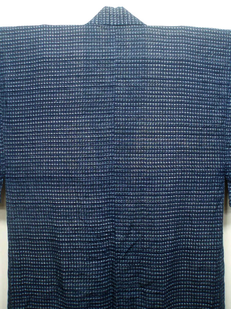 "" "M57341【生地取り用 リメイク用 古布 綿 藍 書生絣】男 単衣 着物" |