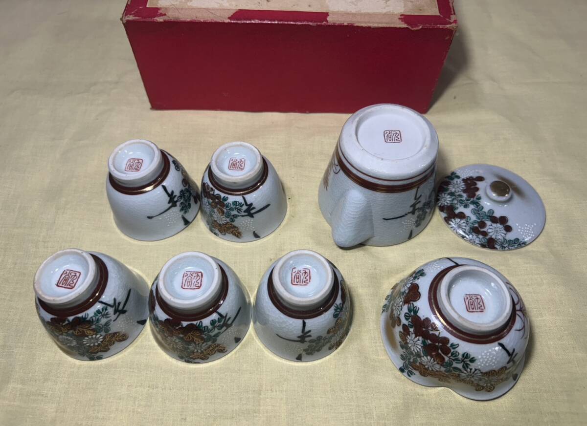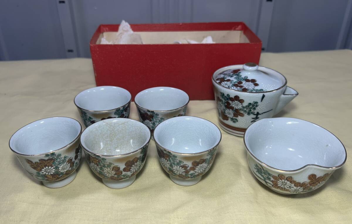 【書道先生放出品 極上 希少価値品 在銘入り】九谷焼 宝瓶 急須 おちょこ 揃い7点セット