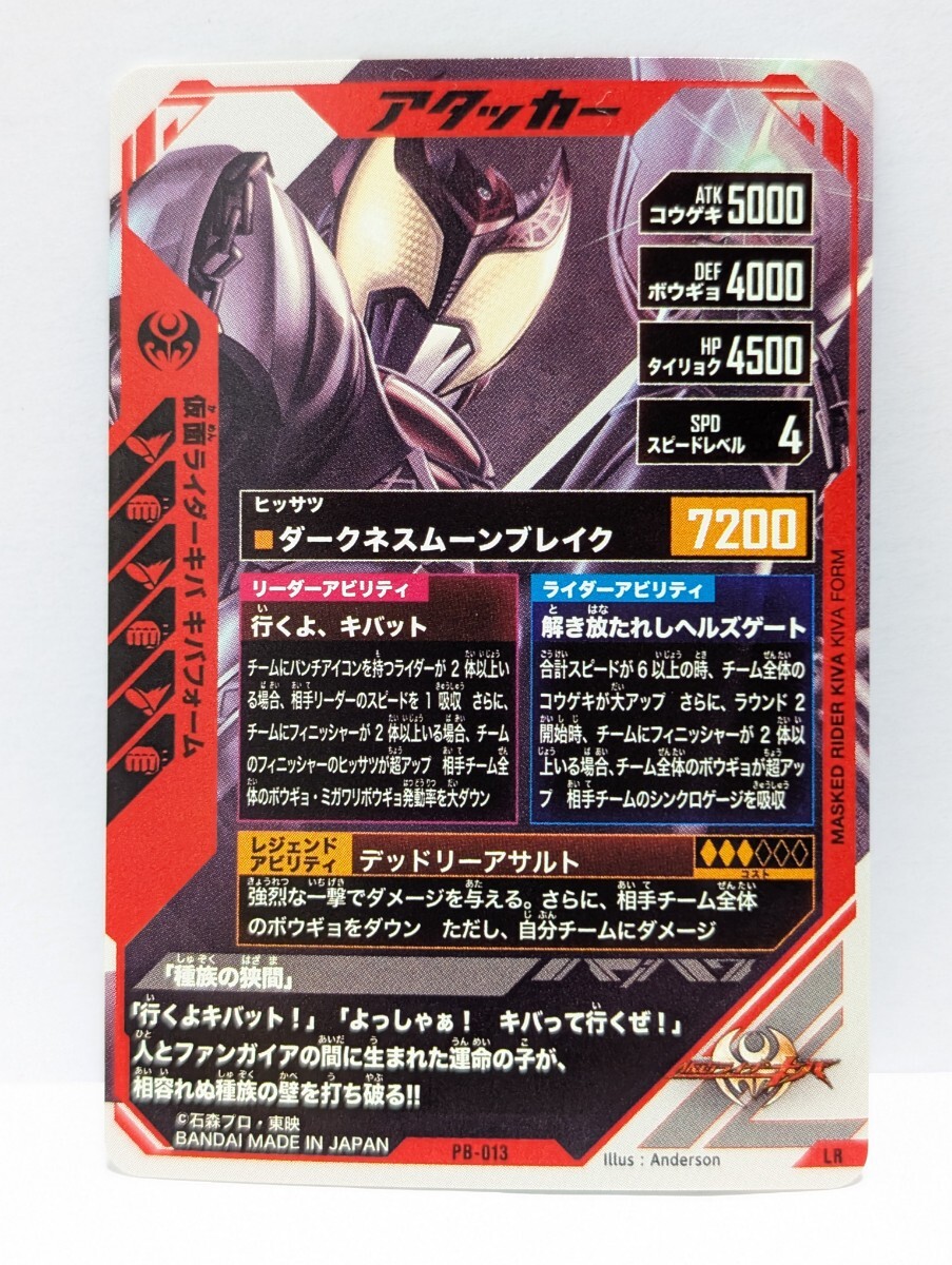 「仮面ライダーバトル ガンバレジェンズ 極めようセット 仮面ライダーキバ キバフォーム(LR PB-013) デッドリーアサルト」を出品します。「おまとめ」可能な方は4枚までミニレター送料85円でお取扱いできます。5枚以上の場合は定形郵便で送料別途計算となります。